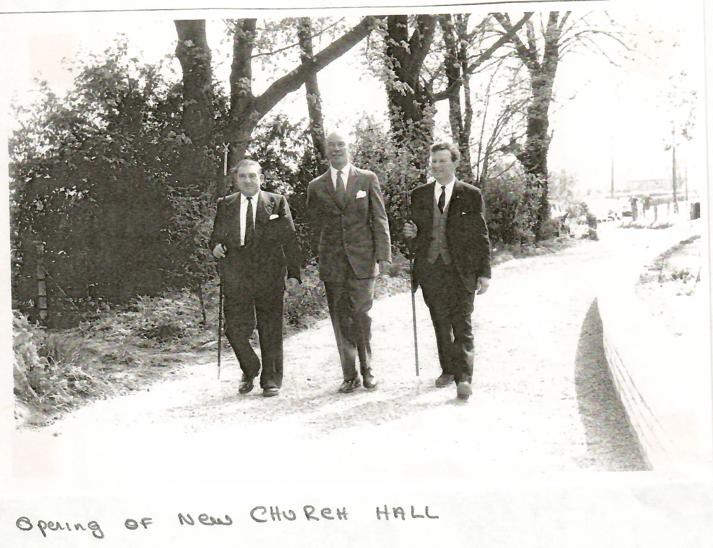 Black and white photograph, walking along Church Lane on the approach to the new Church Hall, opening ceremony April 1968.