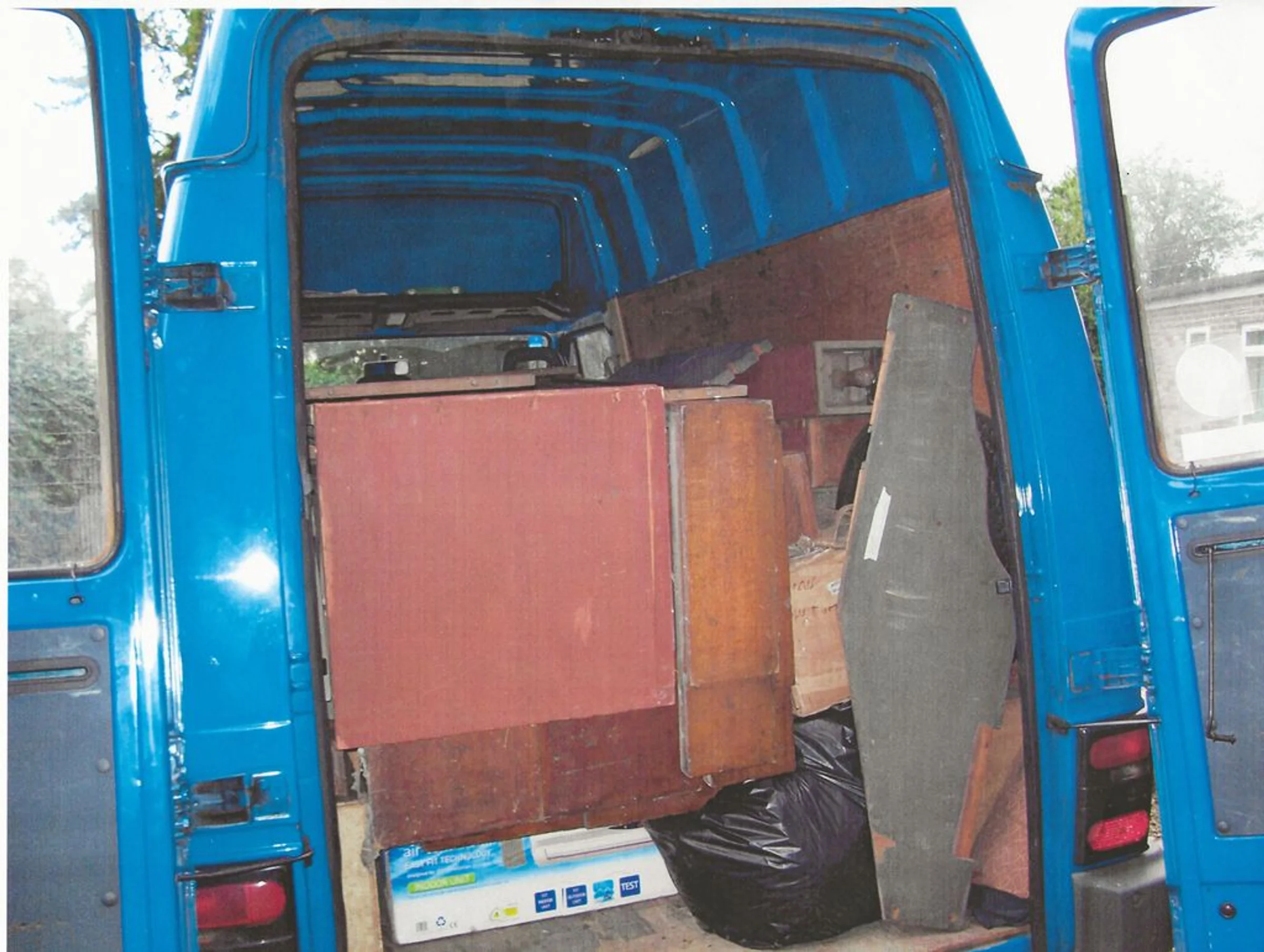 Photograph of the organ loaded into a van for removal, during the reordering.