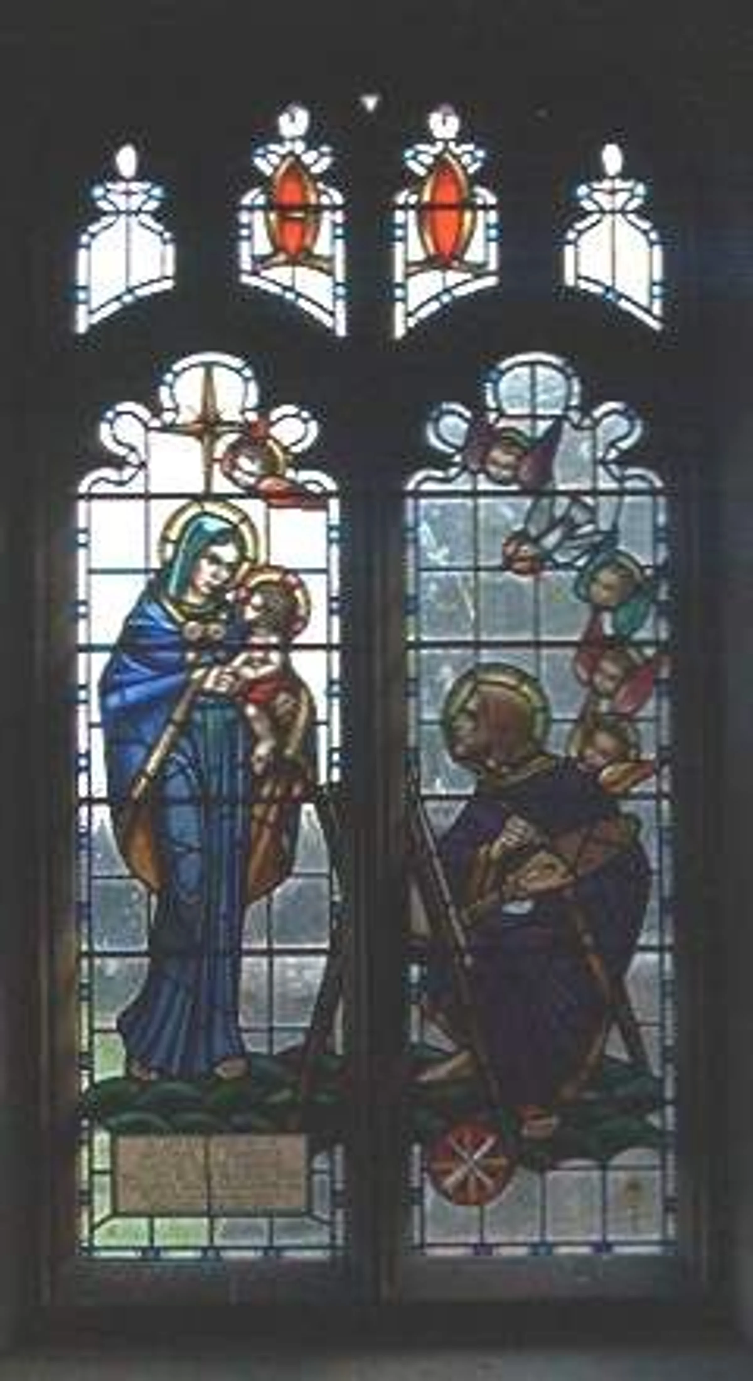 Photograph of the stained glass window of Mary by Painter from the 1960s, recorded in 2002 survey.