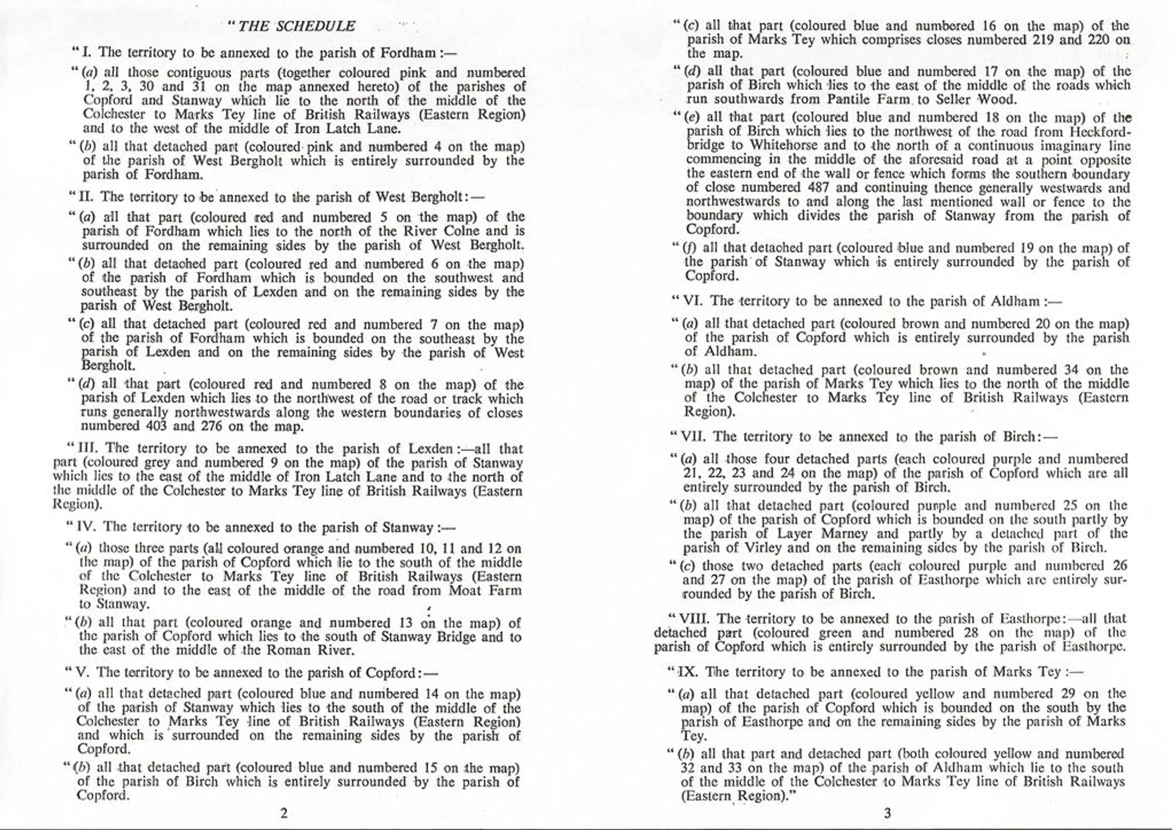 "The Schedule" notes regarding the alterations to the ecclesiastical parish boundaries, 1960.