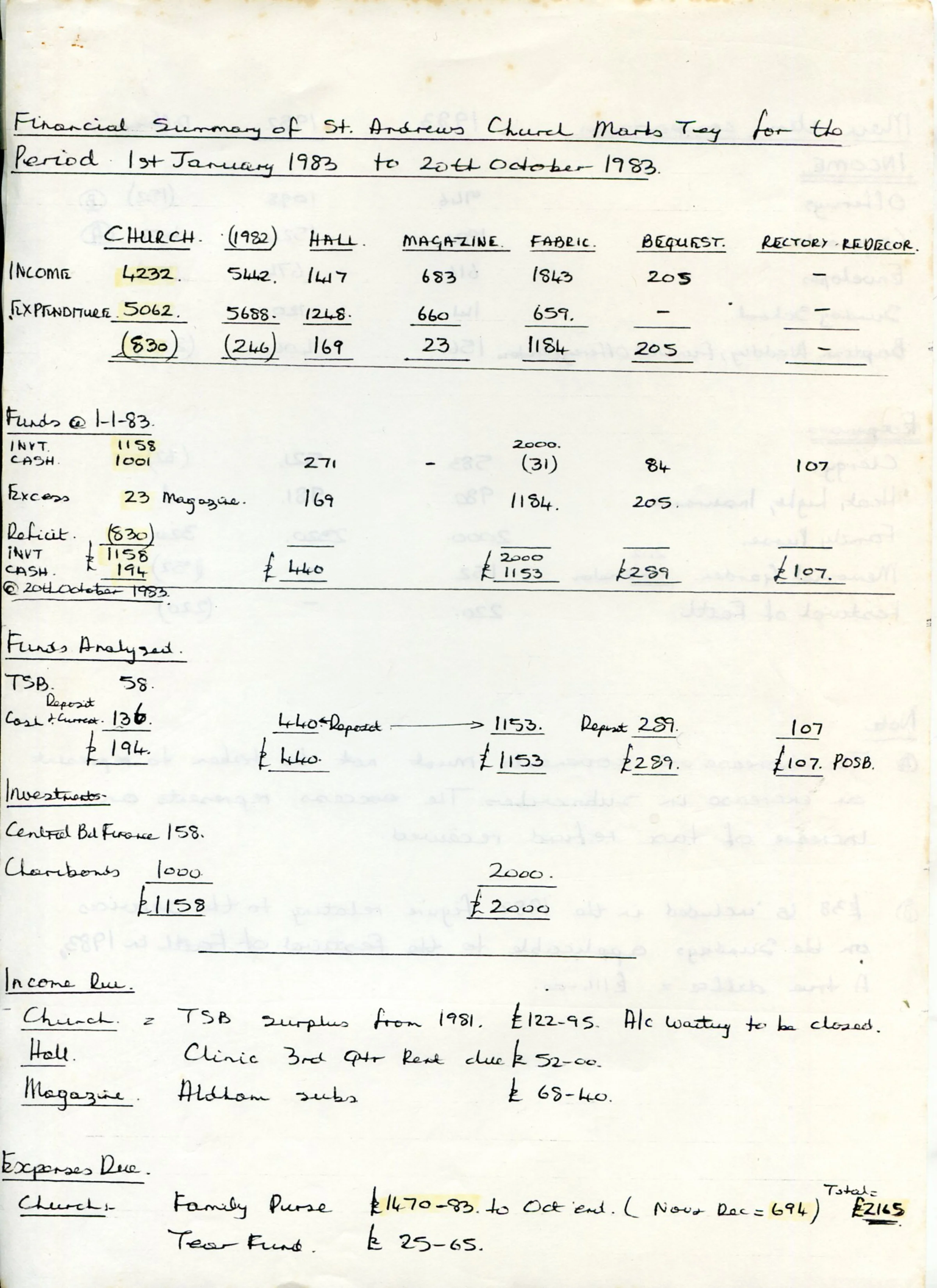 St Andrew's Church PCC accounts 1983