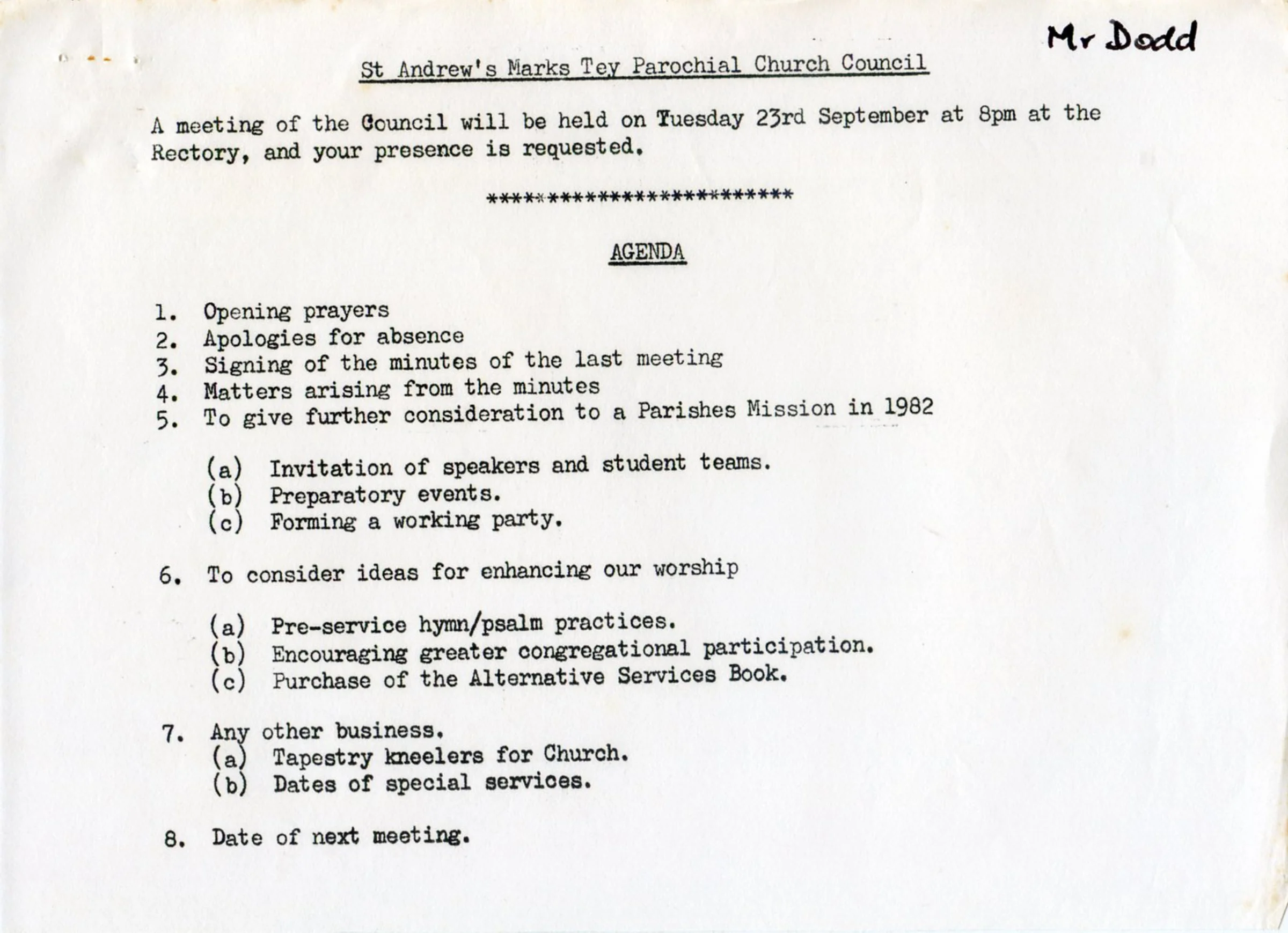 St Andrew's Church PCC agenda Sept 1980