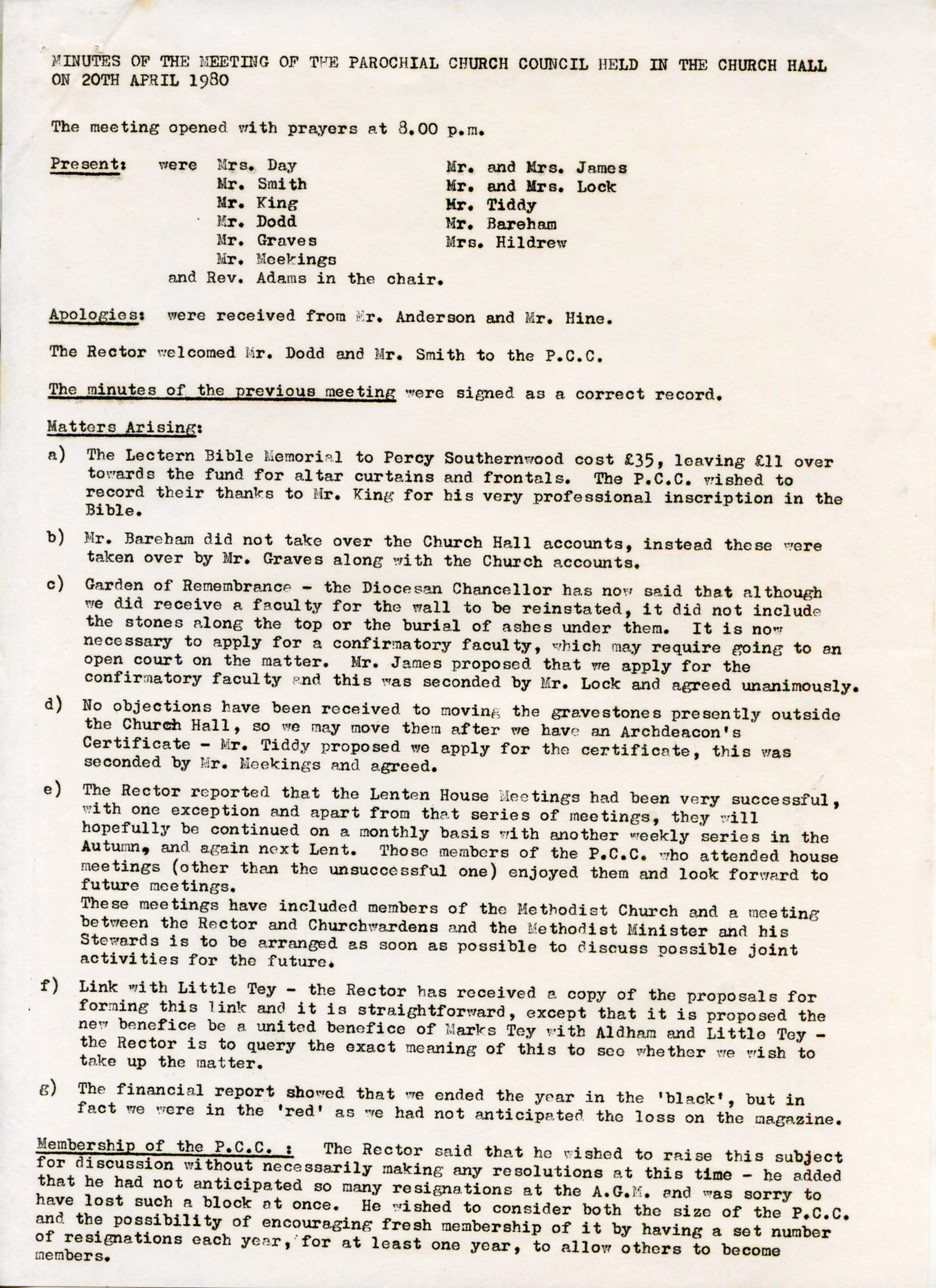 St Andrew's Church PCC April 1980