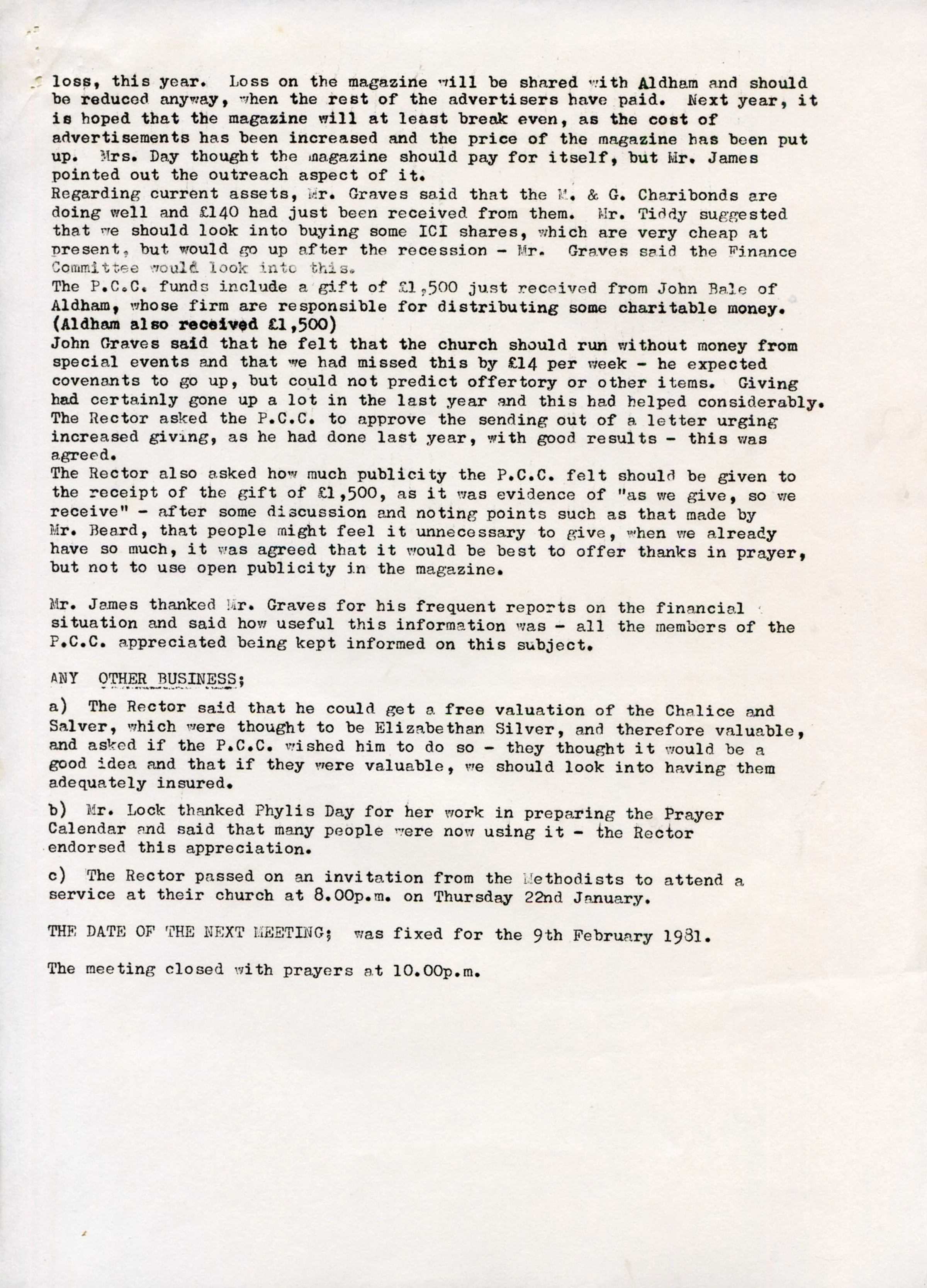 Minutes of the meeting of the Parochial Church Council, 9th December 1980. Page 3 of 3.