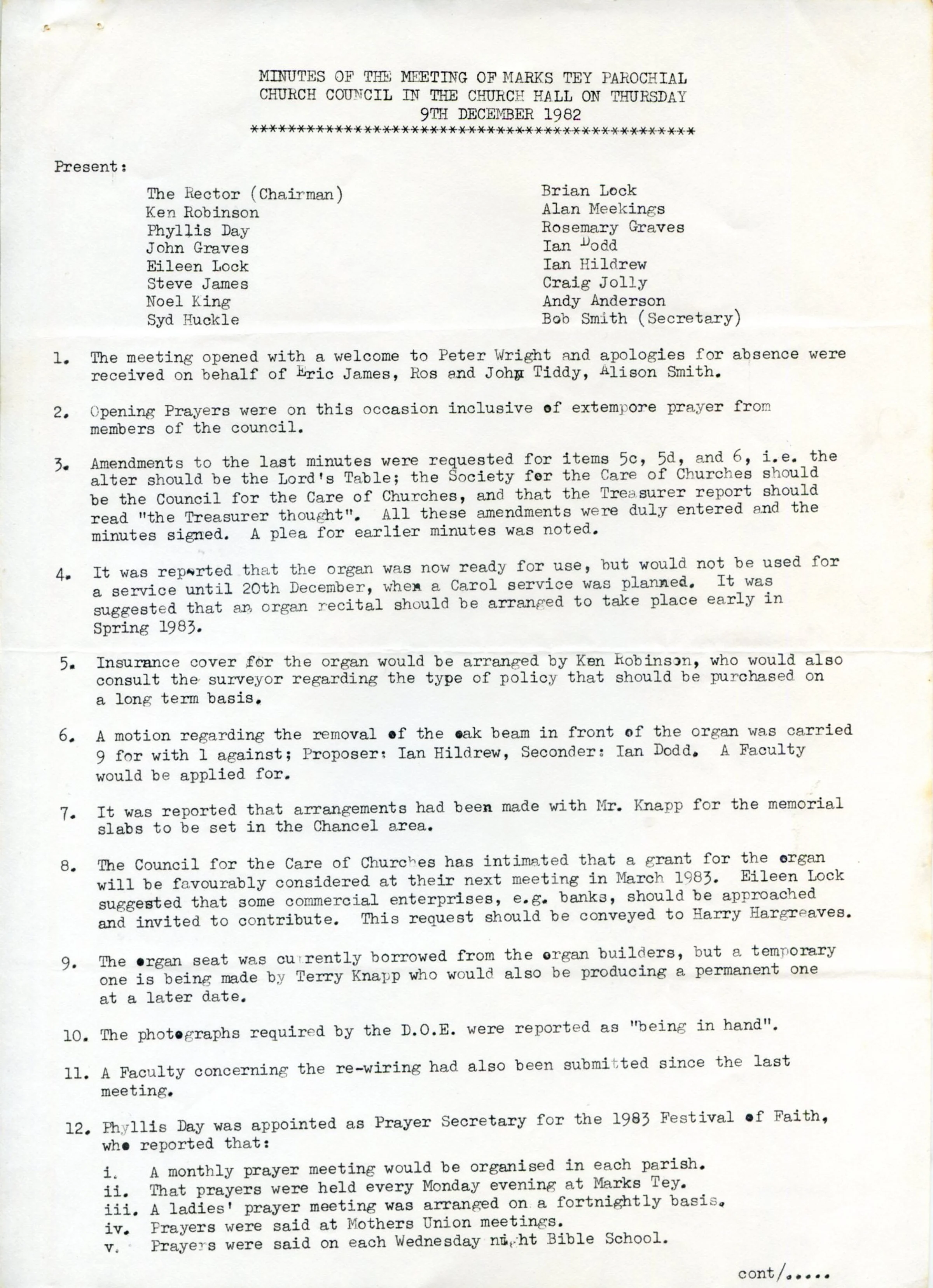 Minutes of the Parochial Church Council meeting, 9th December 1982. Page 1 of 2.