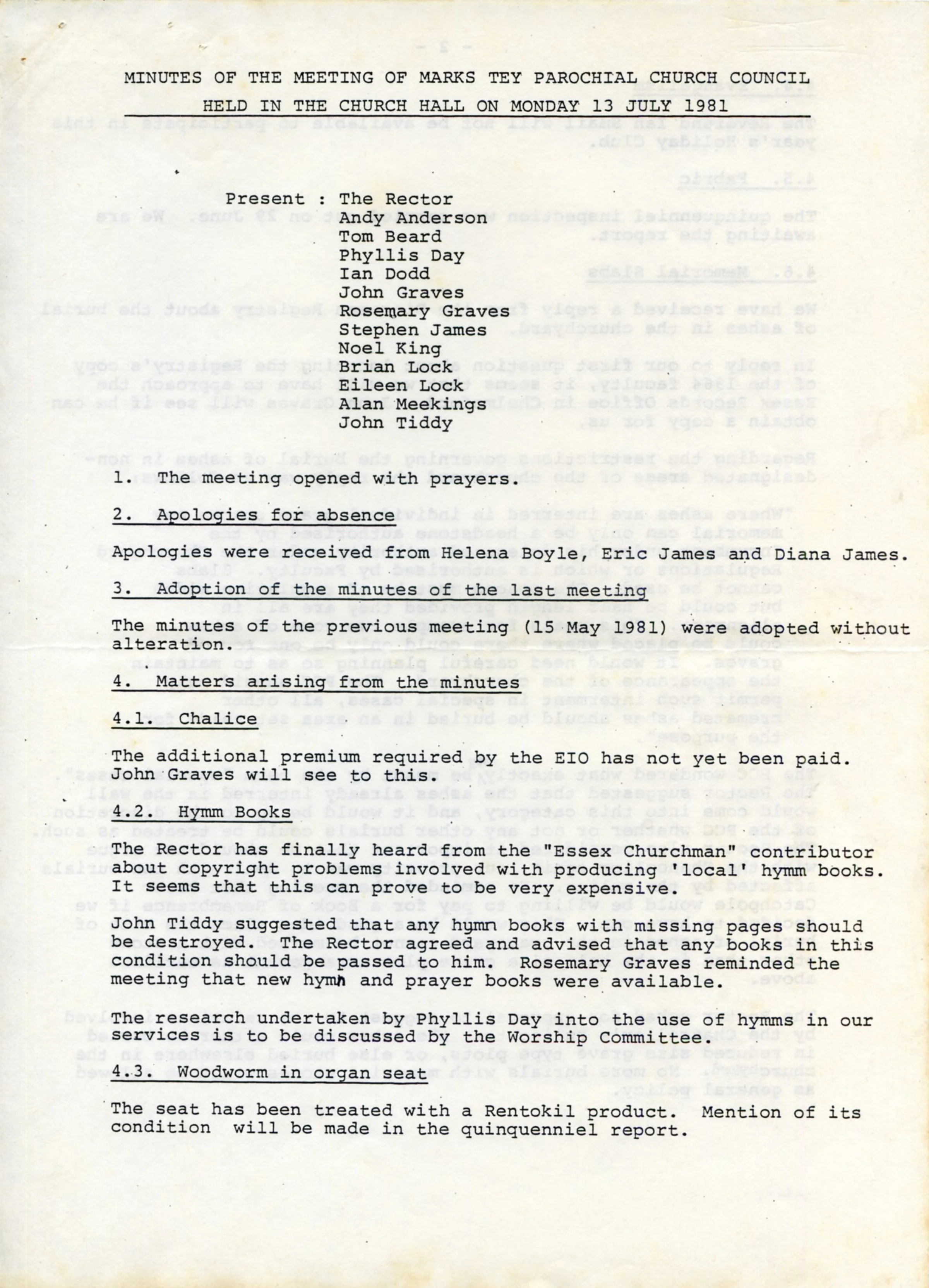 Minutes of the Parochial Church Council meeting, 13th July 1981. Page 1 of 6.