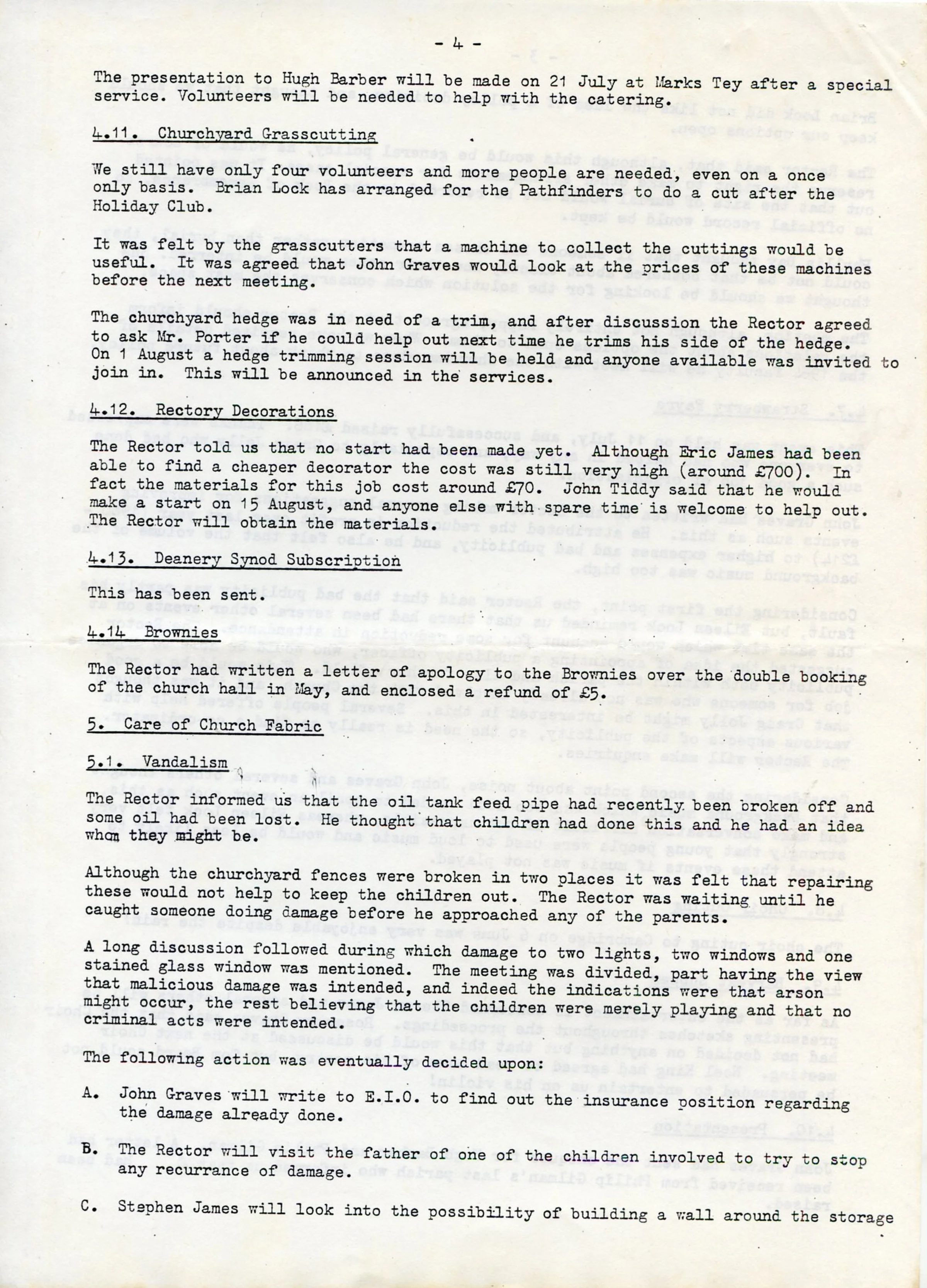 Minutes of the Parochial Church Council meeting, 13th July 1981. Page 4 of 6.