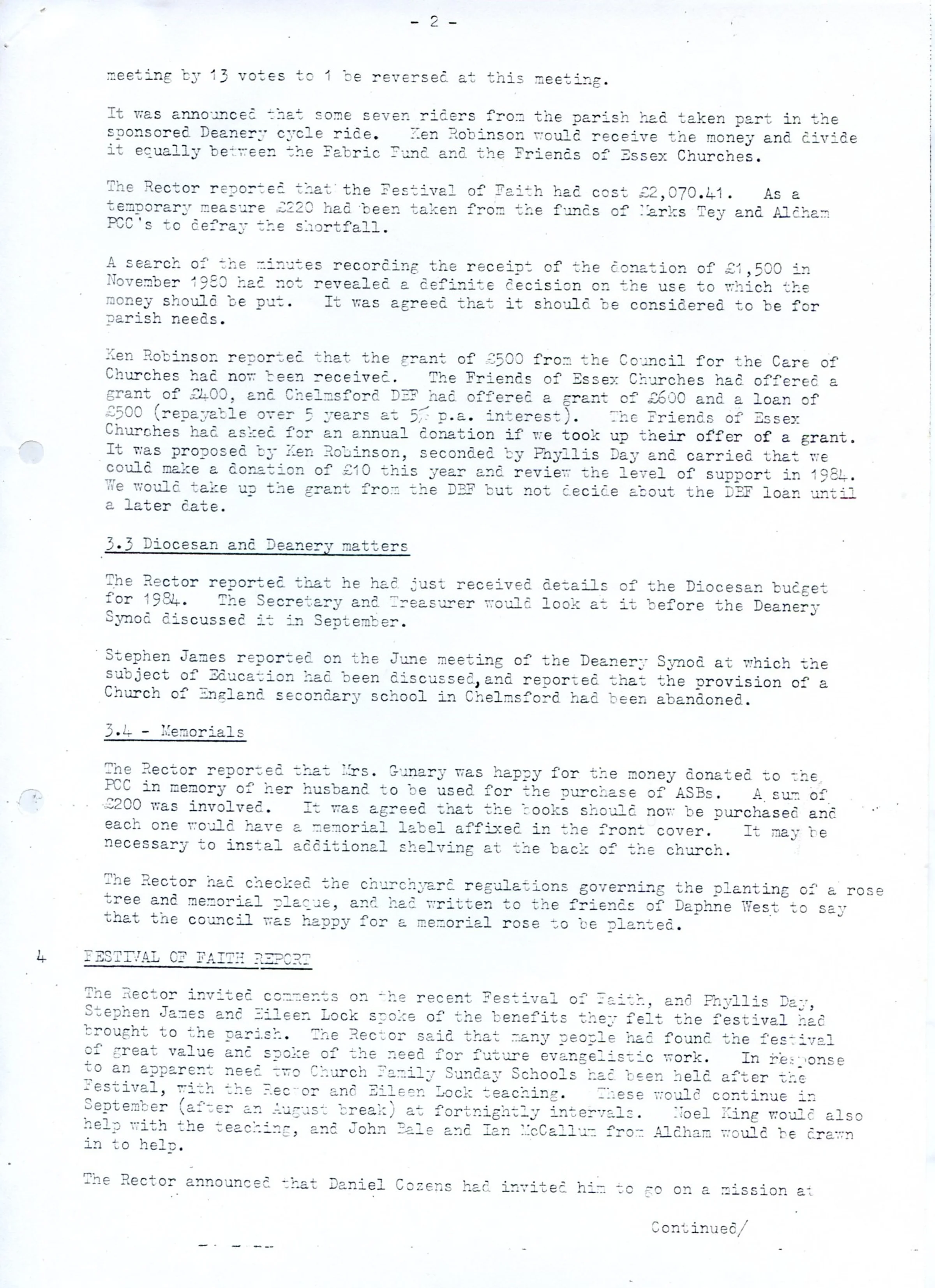 Minutes of the Parochial Church Council meeting, 28th July 1983. Page 2 of 3.