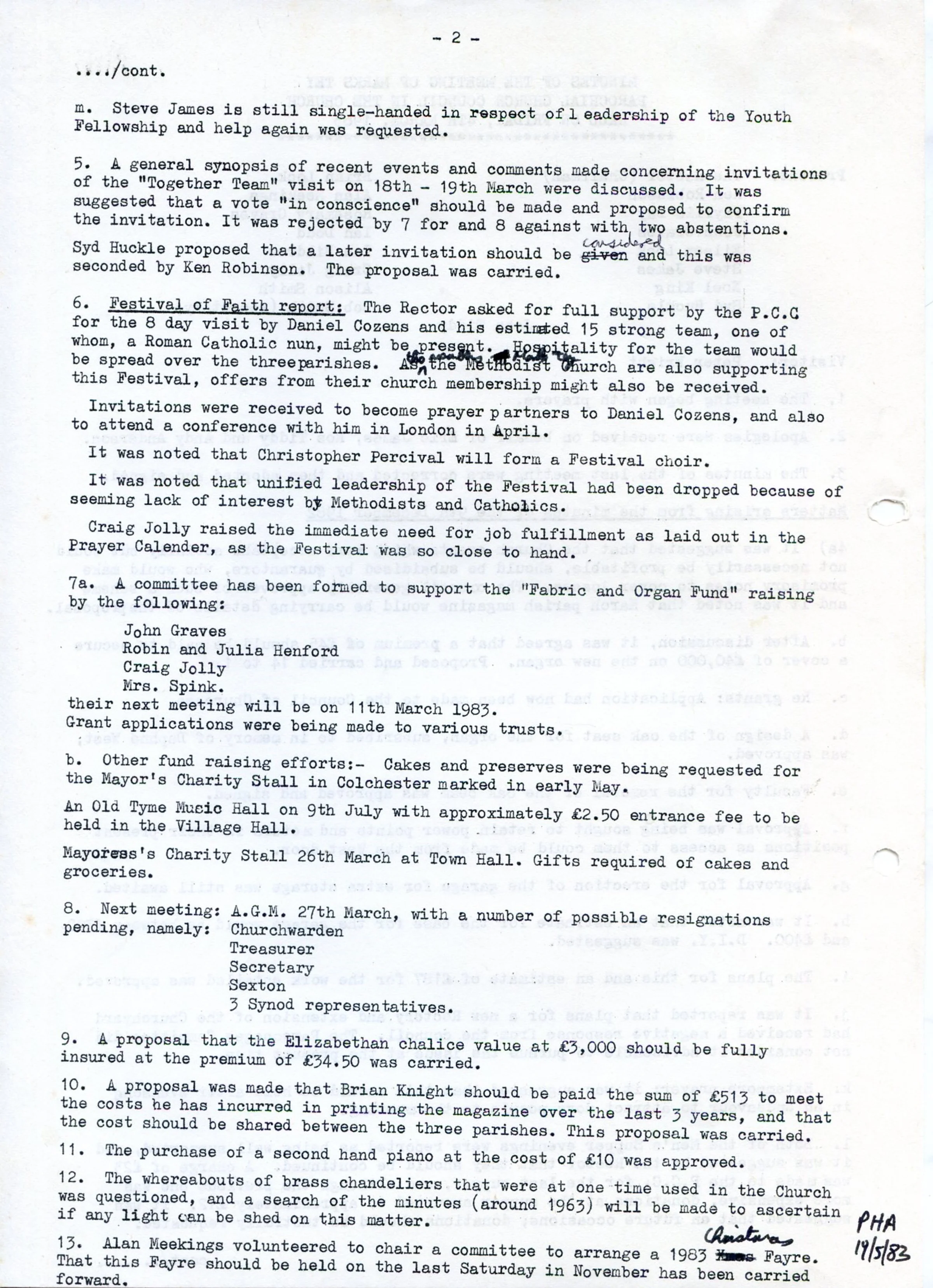 Minutes of the Parochial Church Council meeting, 4th March 1983. Page 2 of 2.