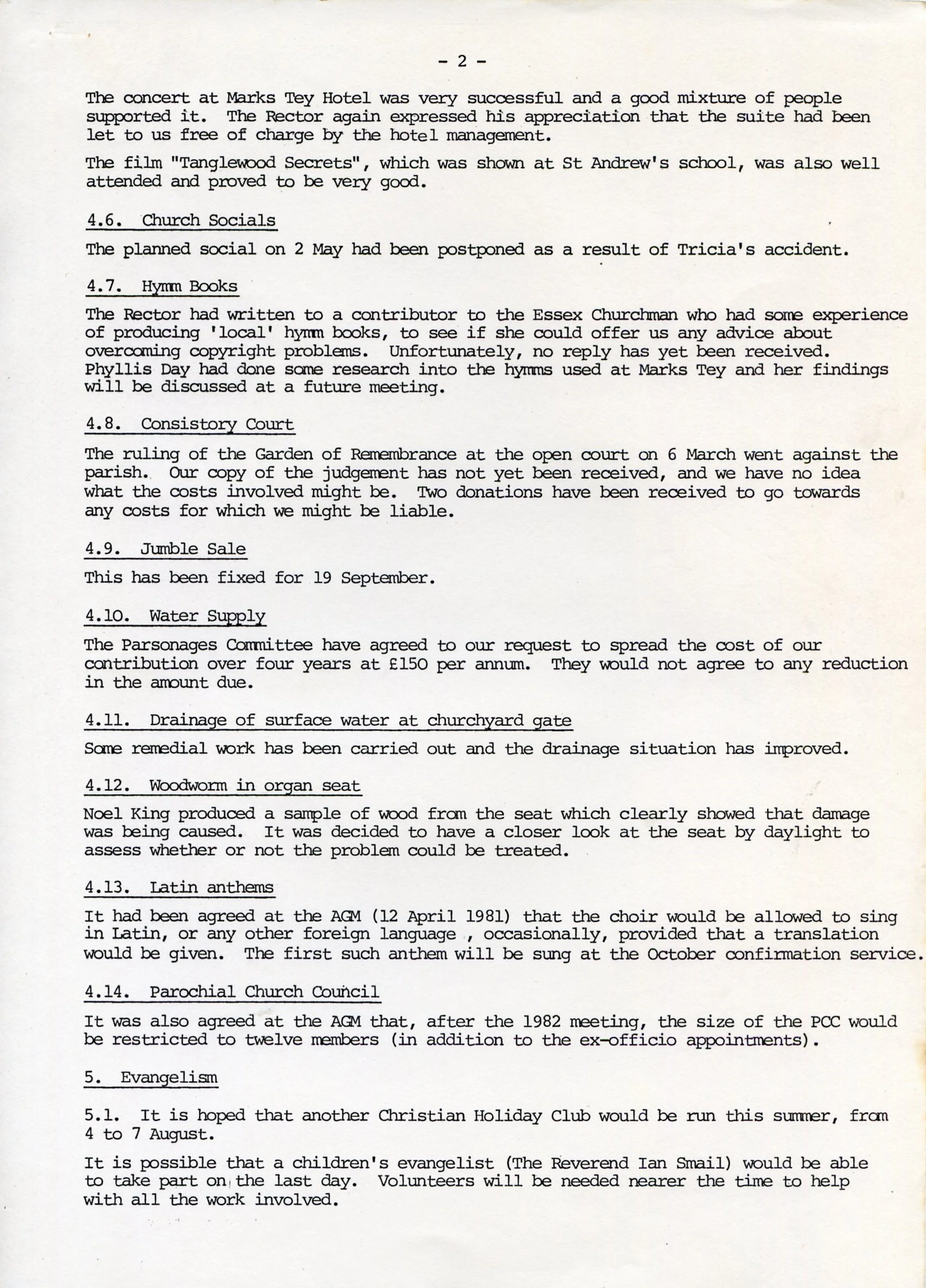Minutes of the Parochial Church Council meeting, 15th May 1981. Page 2 of 5.