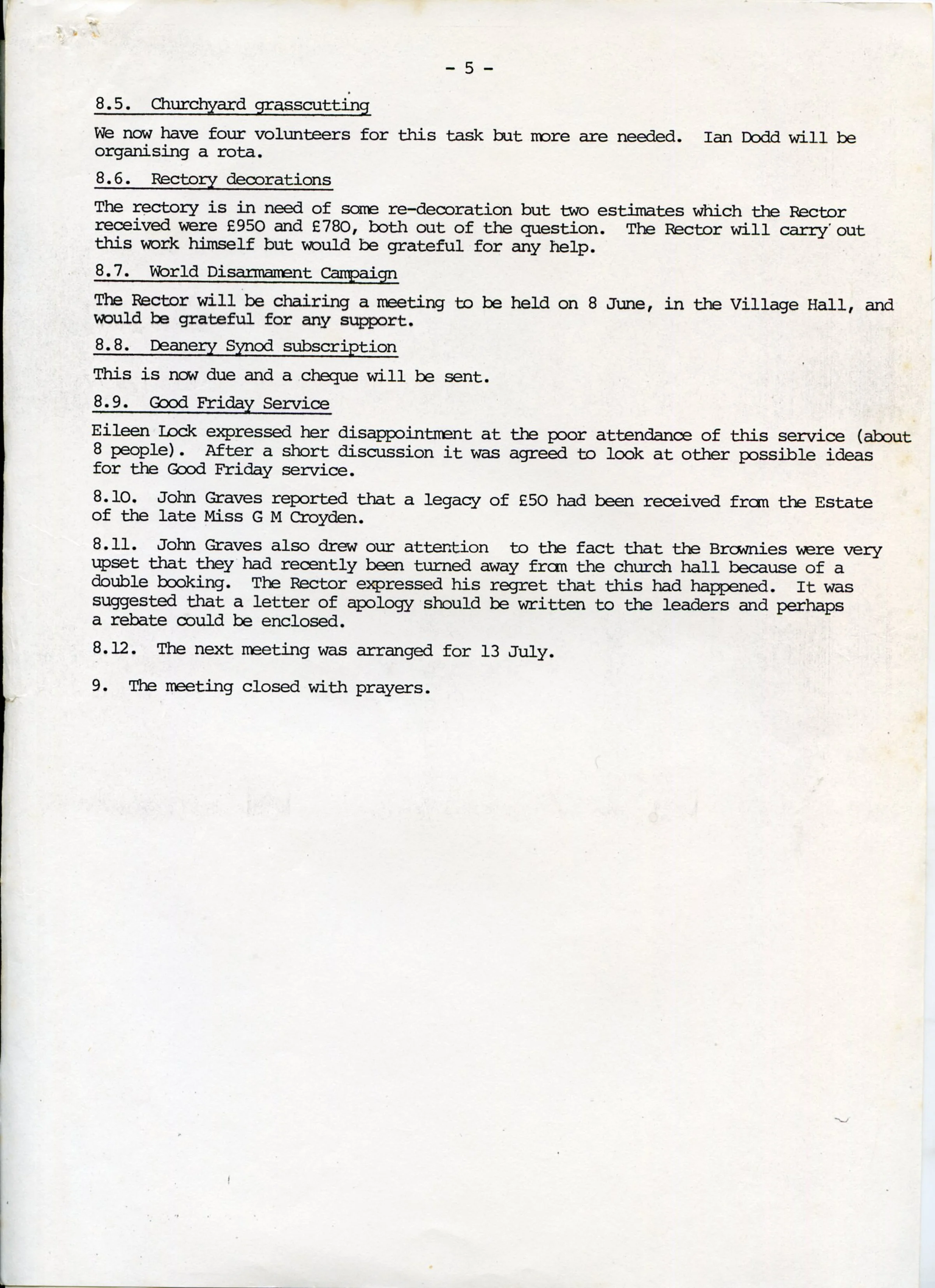 Minutes of the Parochial Church Council meeting, 15th May 1981. Page 5 of 5.