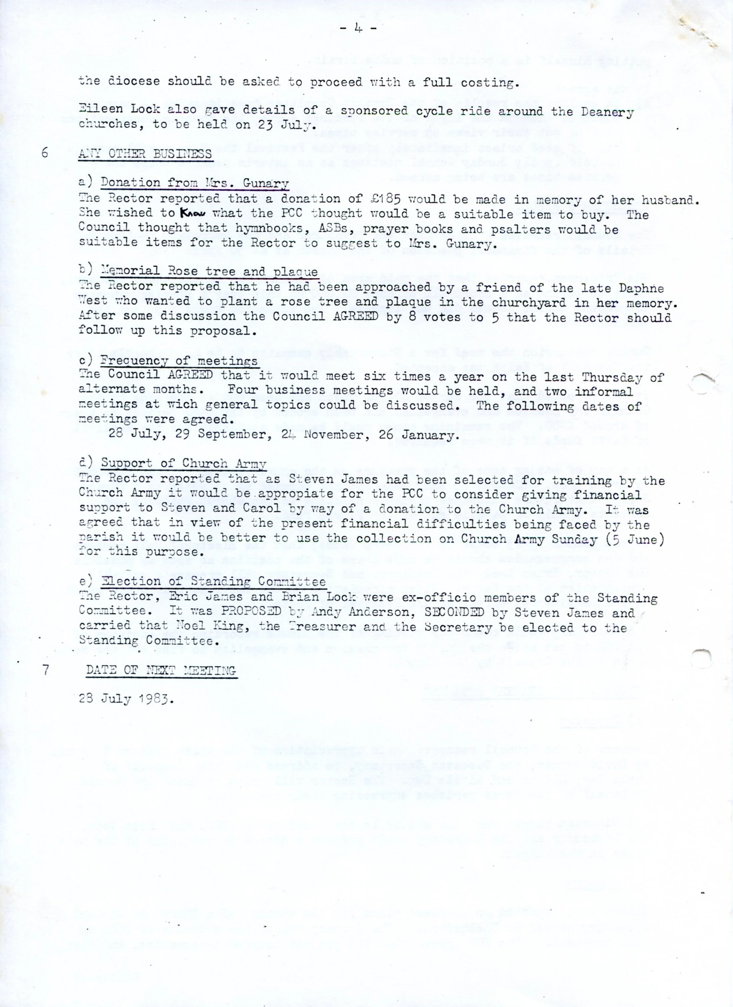 Minutes of the Parochial Church Council meeting, 19th May 1983. Page 4 of 4.