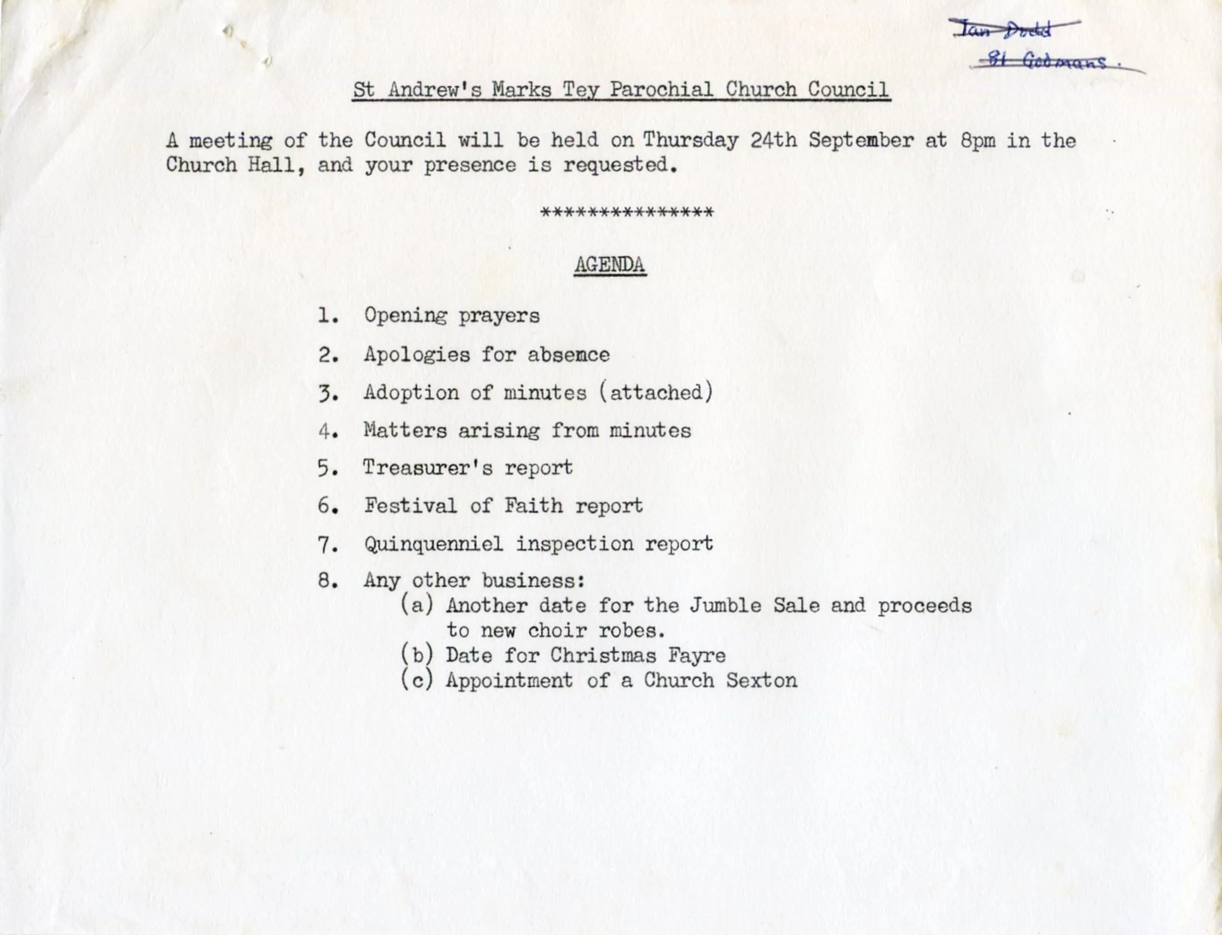 St Andrew's Church PCC Sept agenda 1981