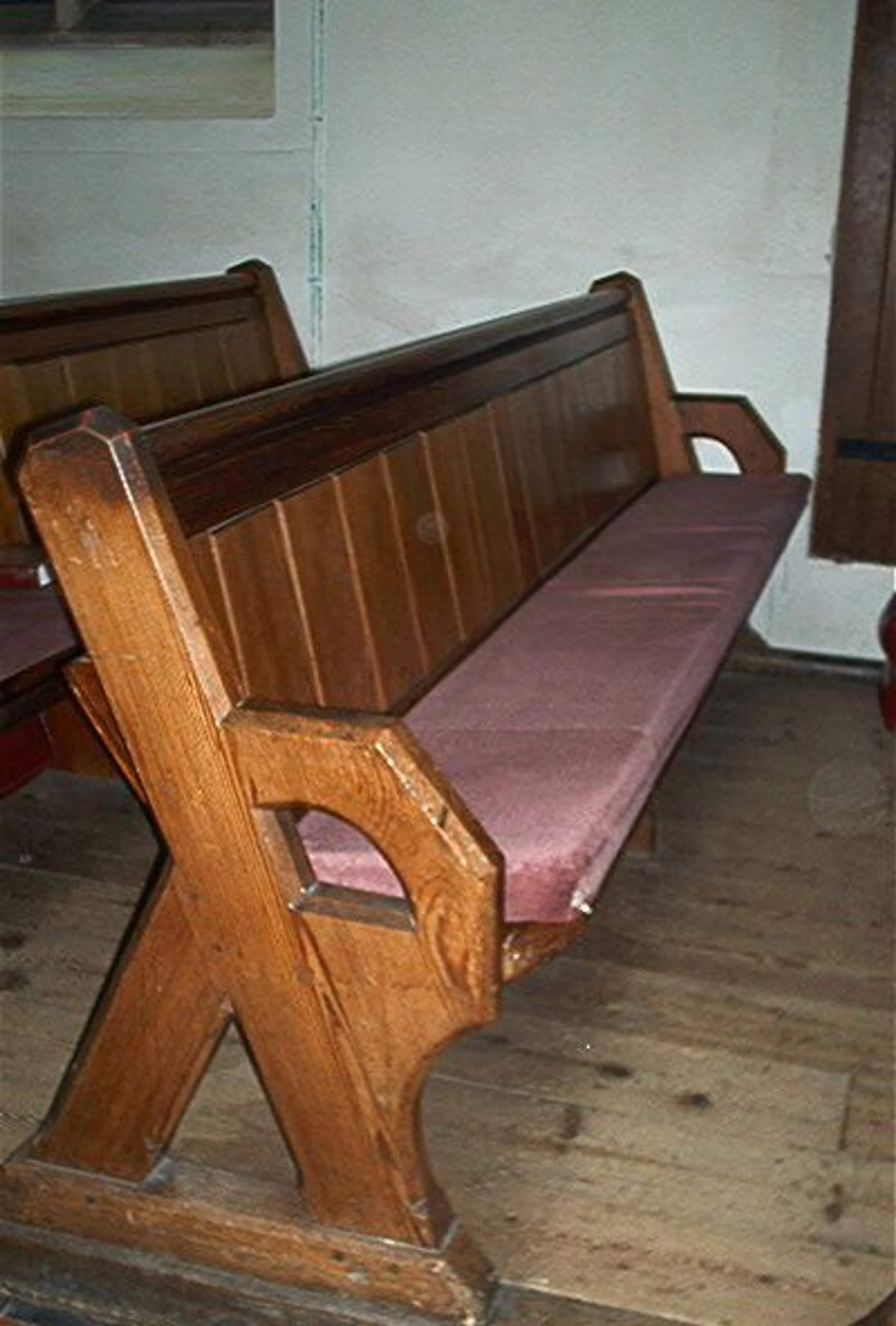 Photograph of a wooden pew in the nave, recorded in 2002 survey.