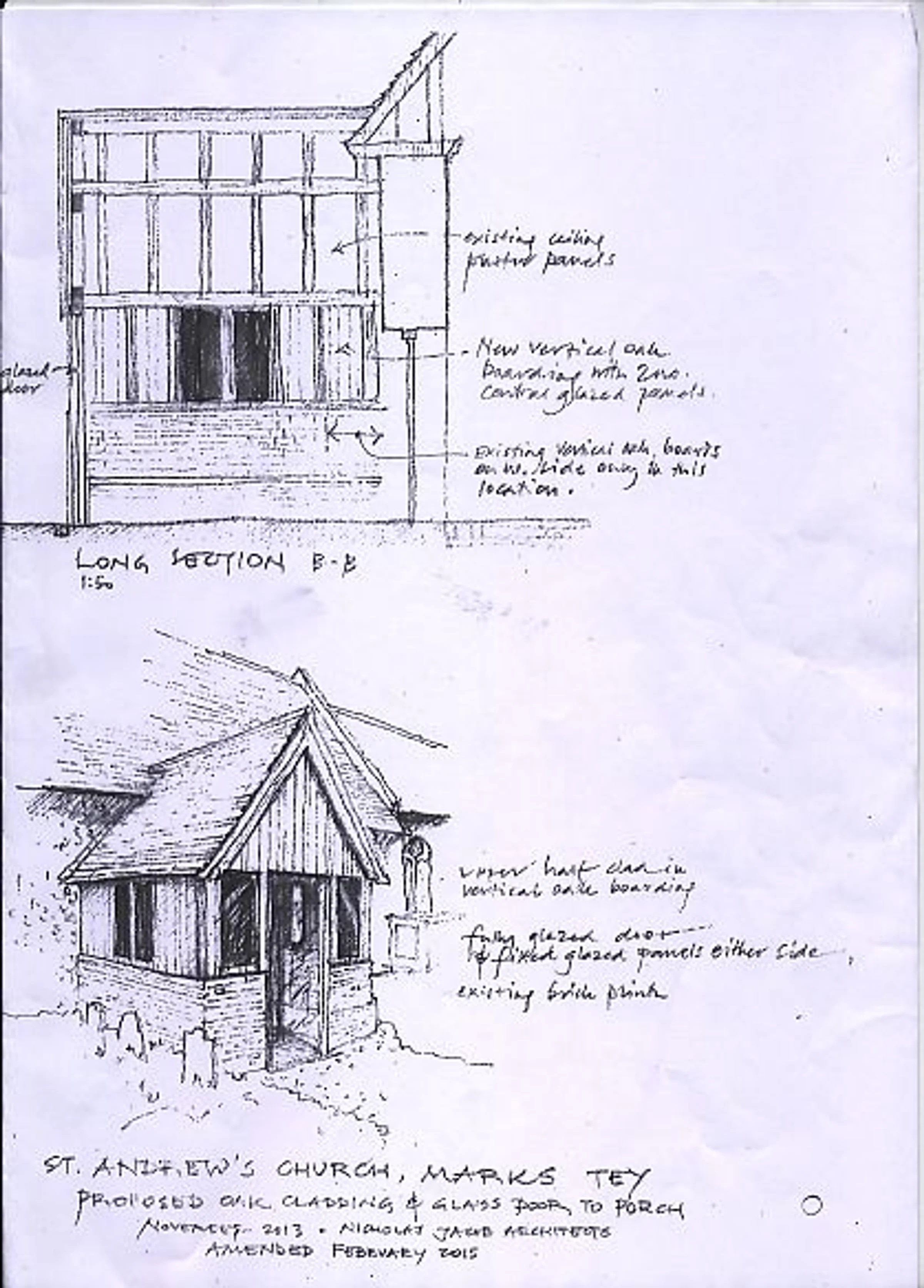 Diagram of the proposed oak cladding and glass door for the porch at St Andrew's Church.