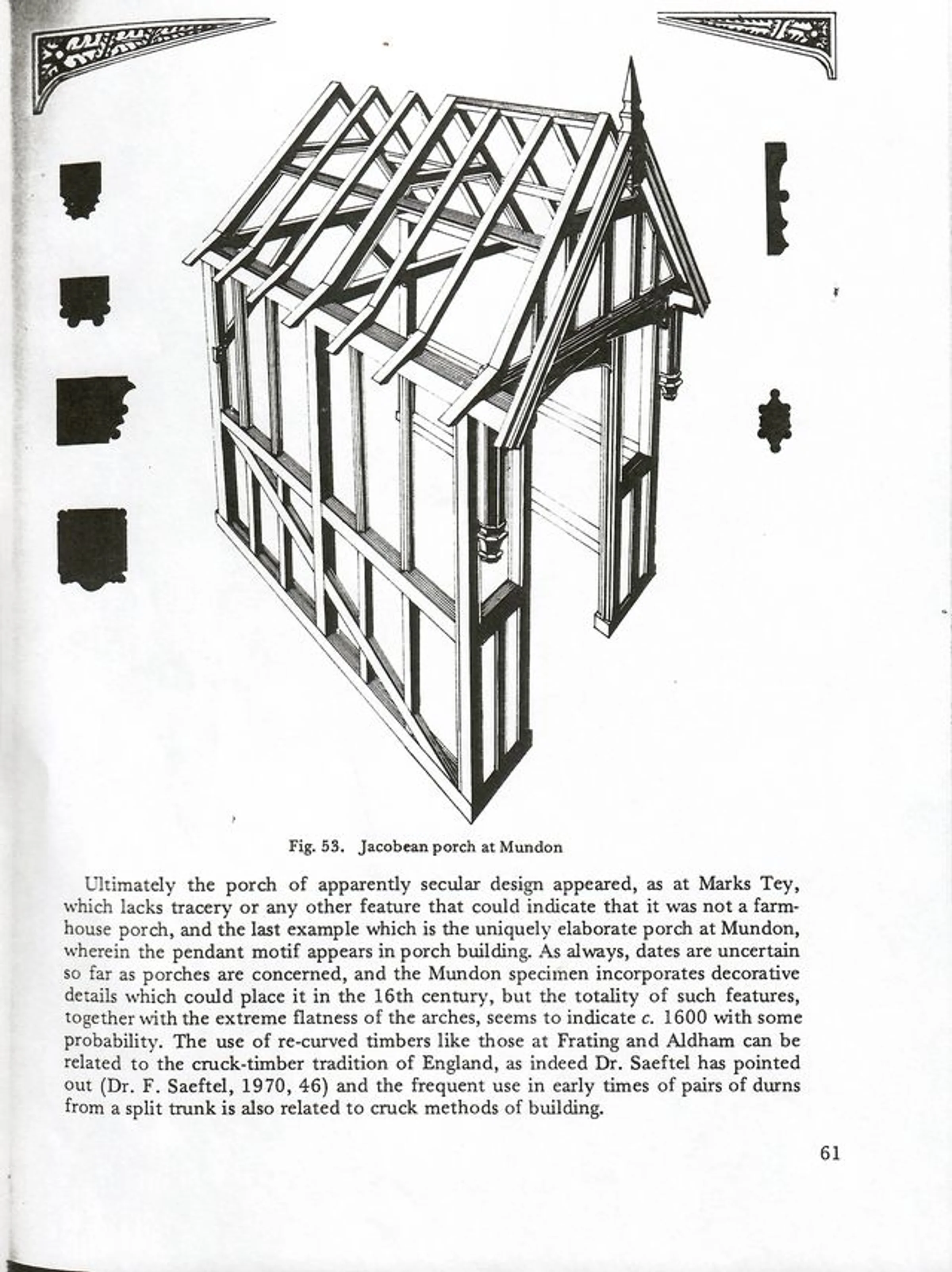 Published discussion of the church porch by Cecil Hewett, "English Church Carpentry" p61.
