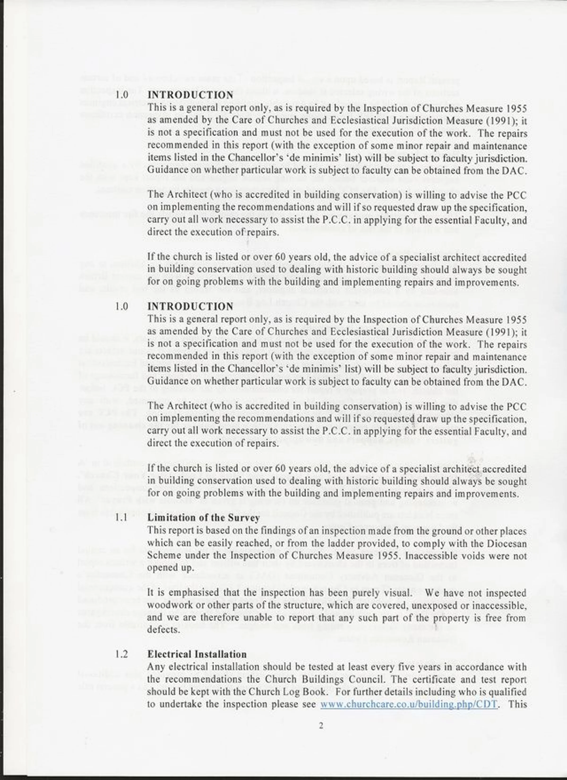 Page 2 of the Quinquennial Inspection Report for St Andrew's Church 2018, by Nicholas Jacob Architects on 23rd May 2018.