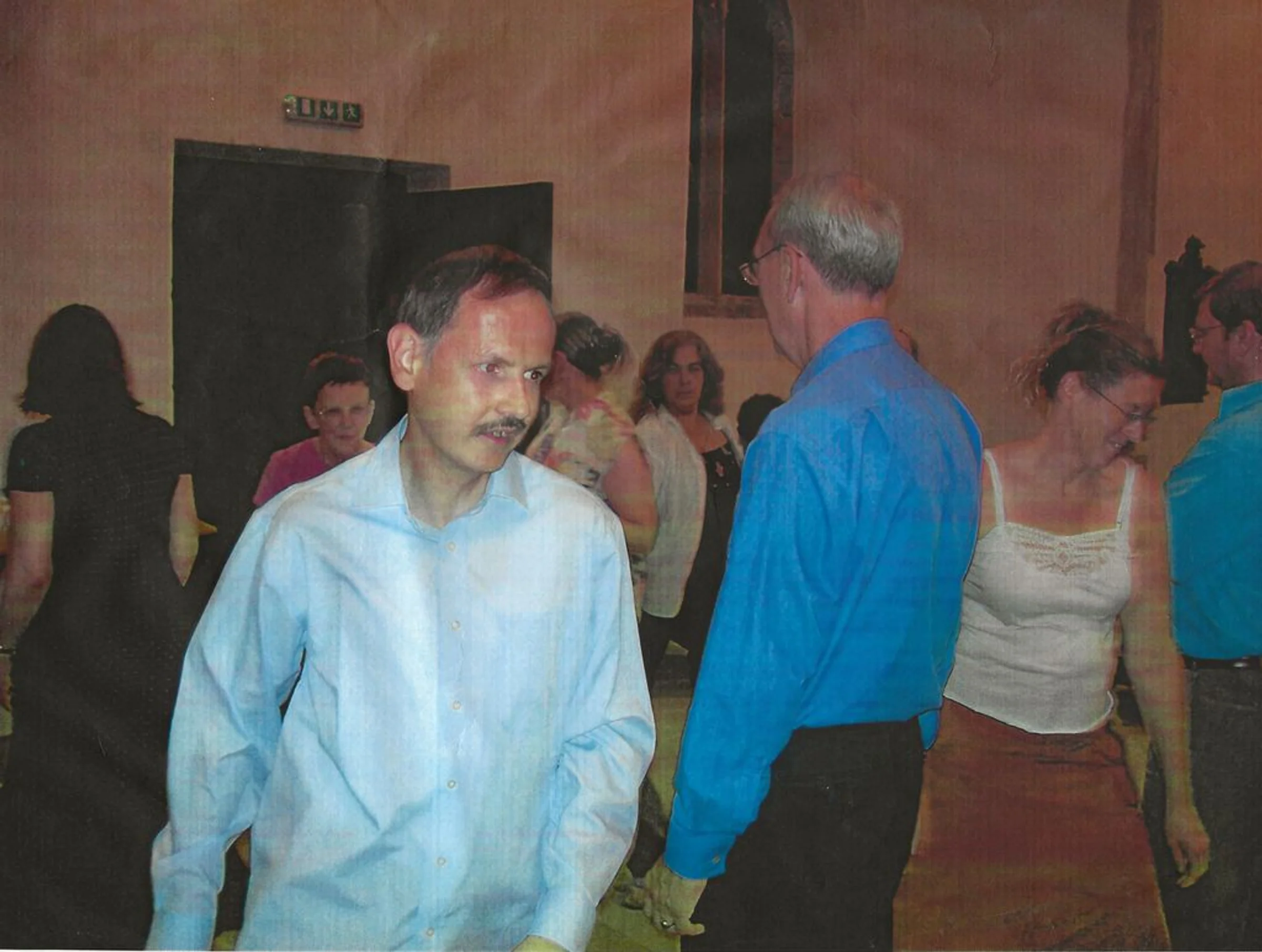 Photograph in the church of a barn dance, following the reordering of t Andrew's Church.