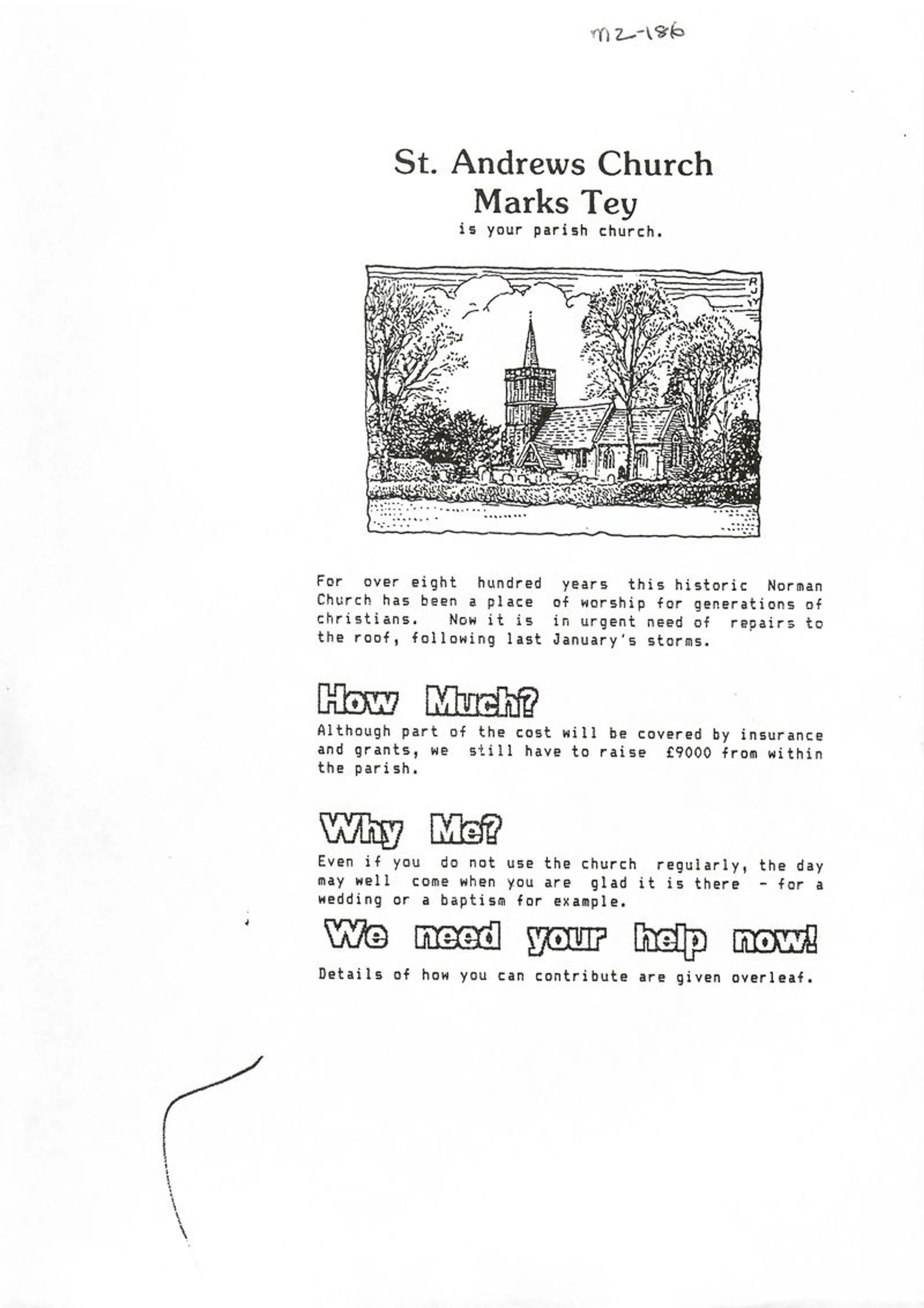 Leaflet regarding the roof appeal following storm damage in 1990.