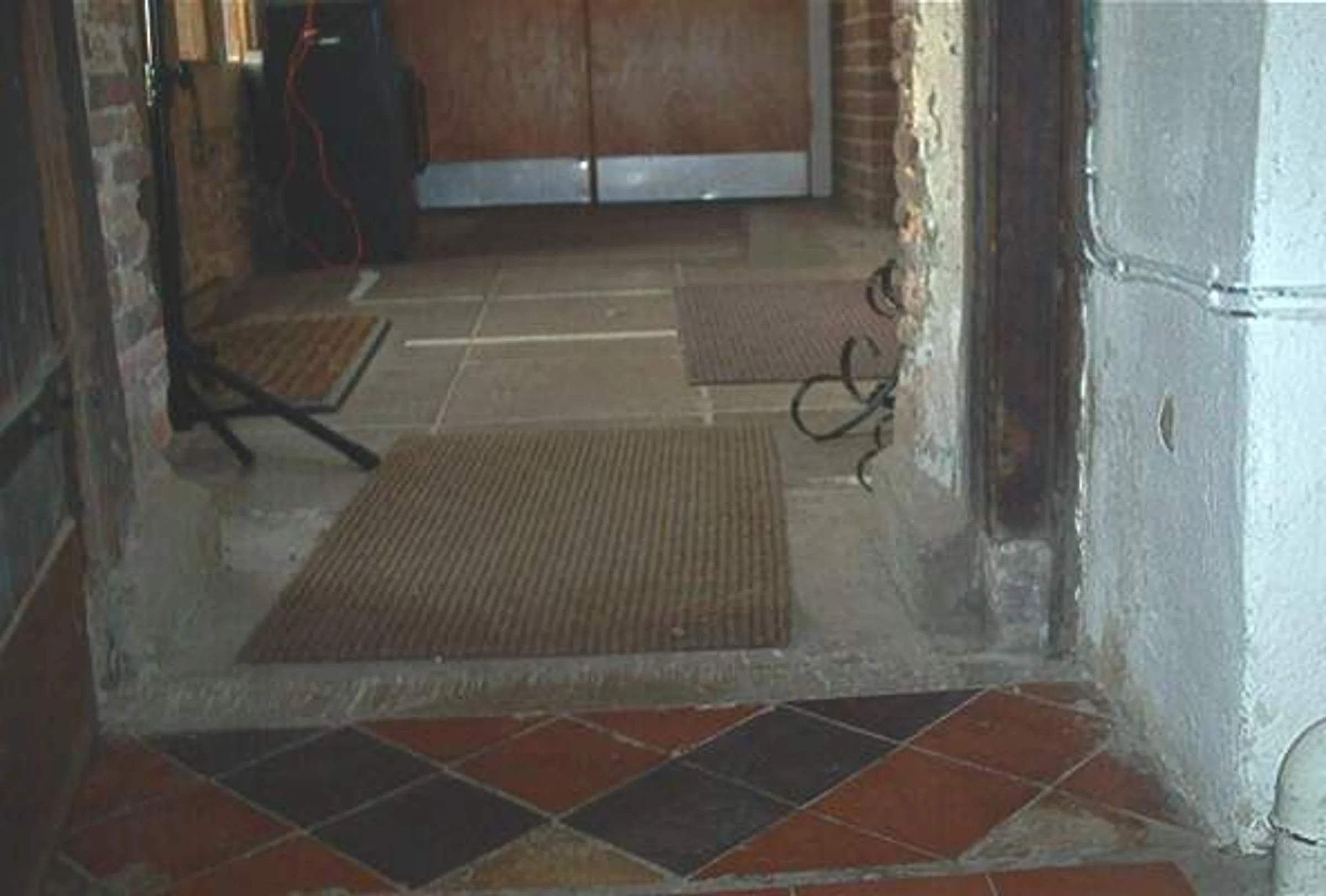 Photograph looking north of the passage between the church and the hall, recorded in 2002 survey.