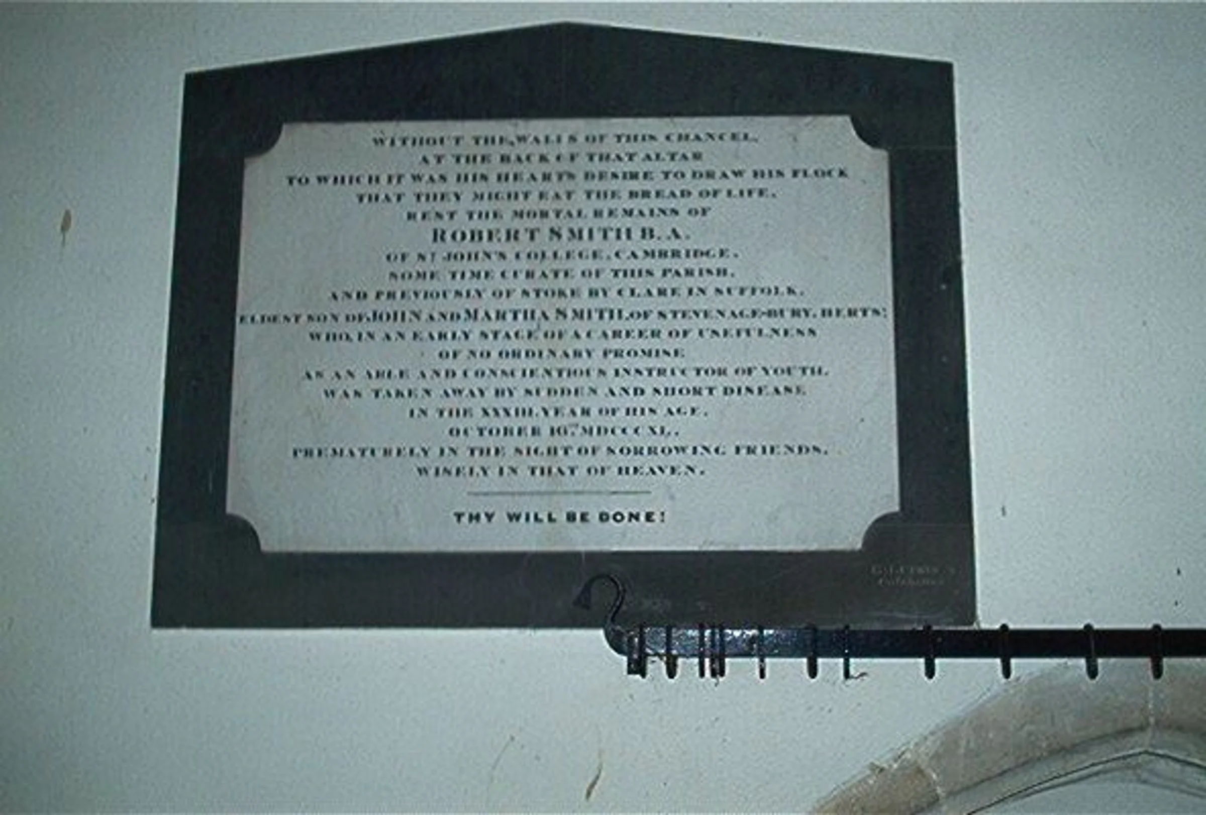 Wall plaque to Robert Smith in the south chancel, recorded in the 2002 survey.