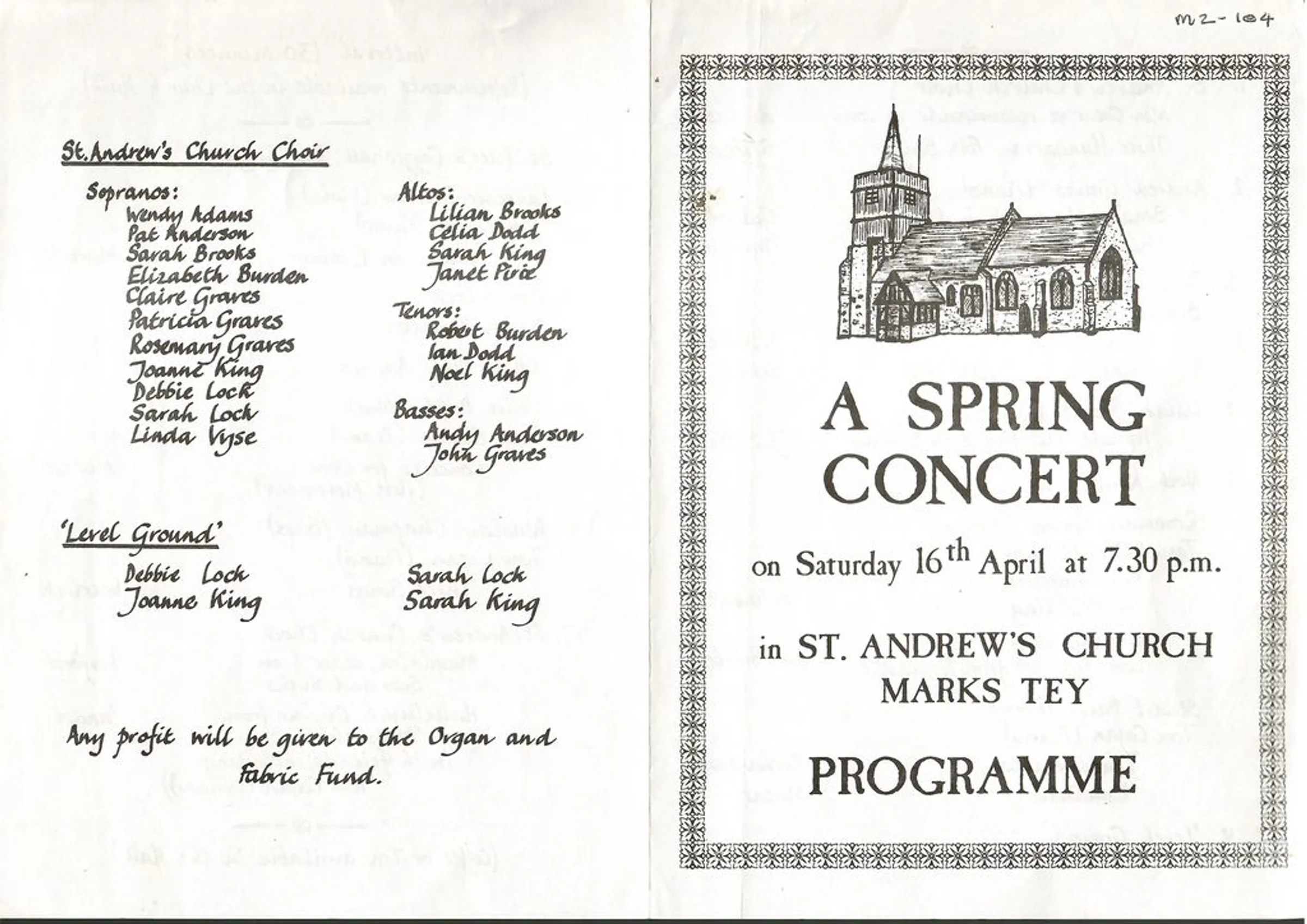 Programme from "A Spring Concert" held in St Andrew's Church 16th April 1982. Page 1 of 2.