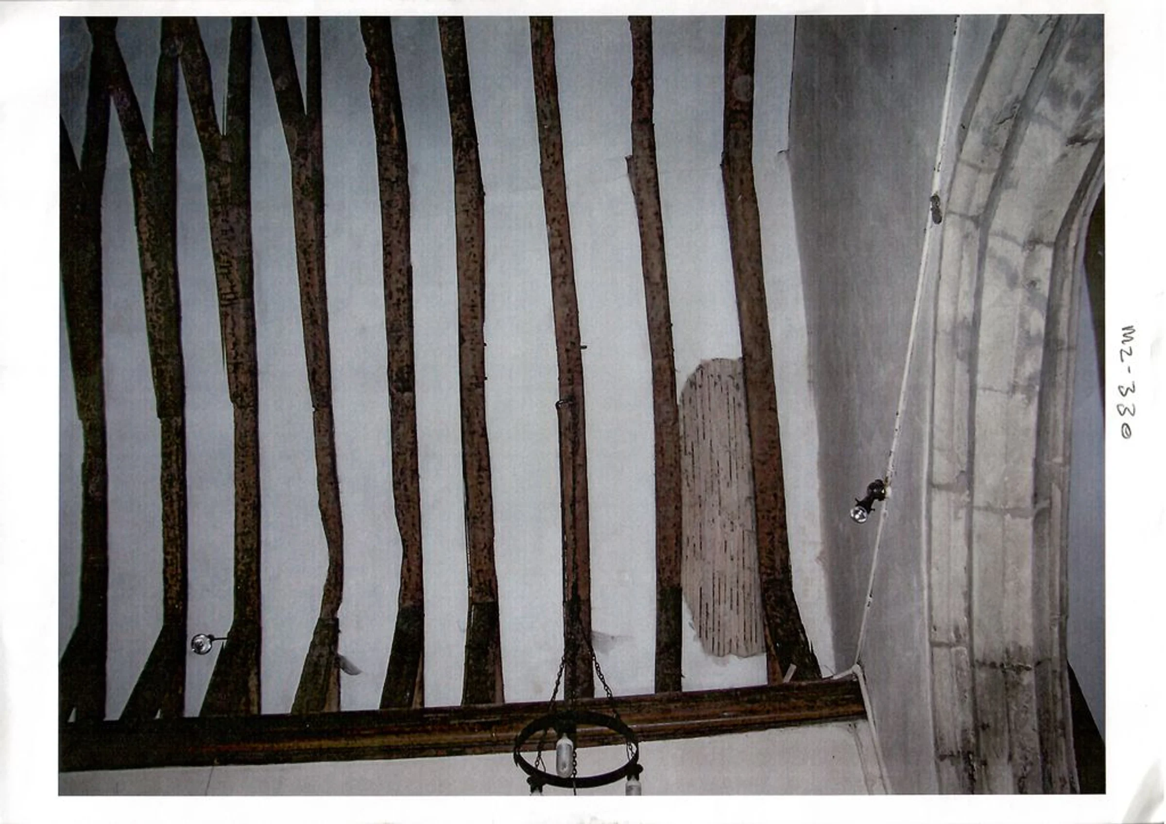 Photograph of missing plaster on the nave ceiling, following a thunderstorm in August 2006.