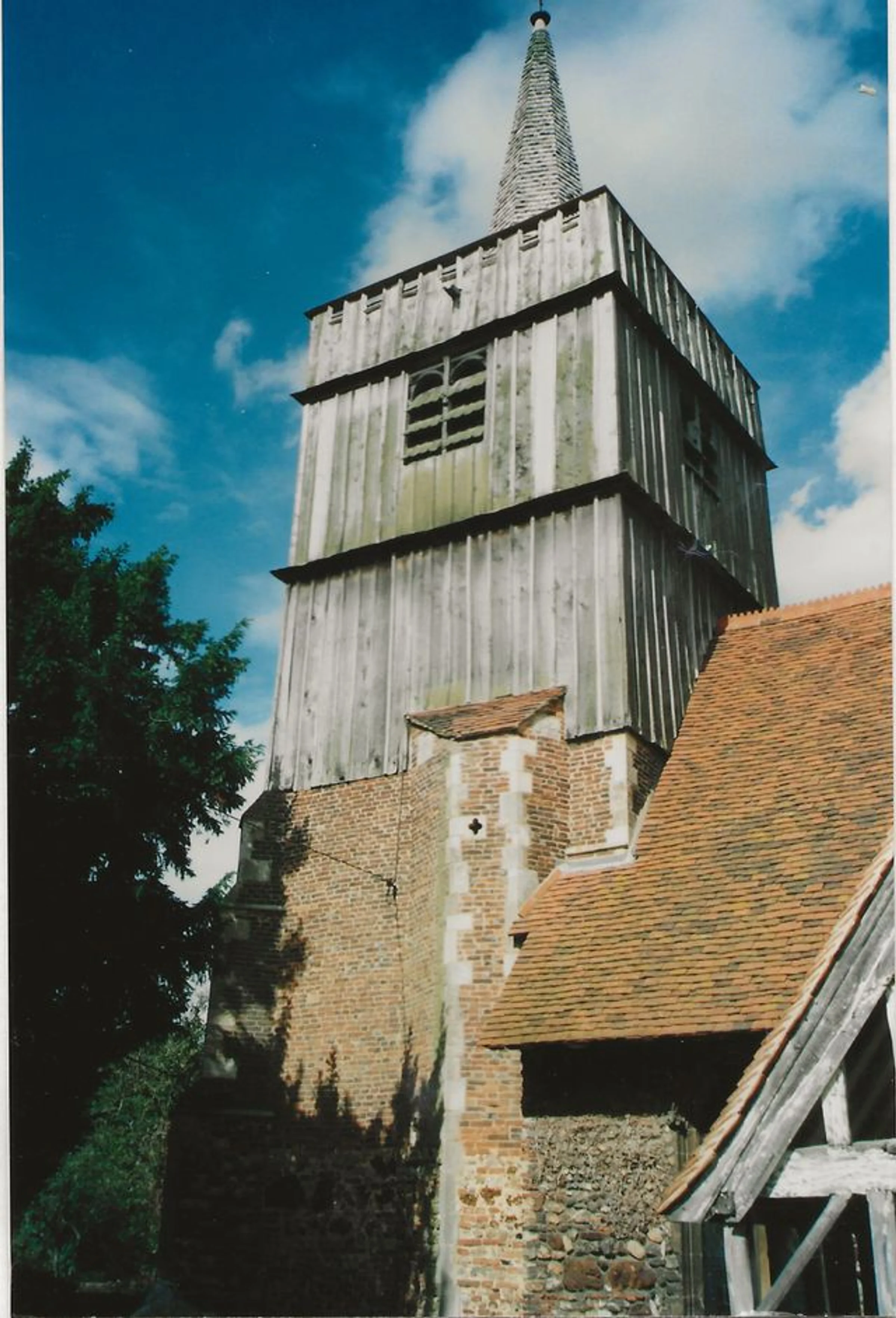 Photograph looking north of St Andrew's Church tower, in good repair.