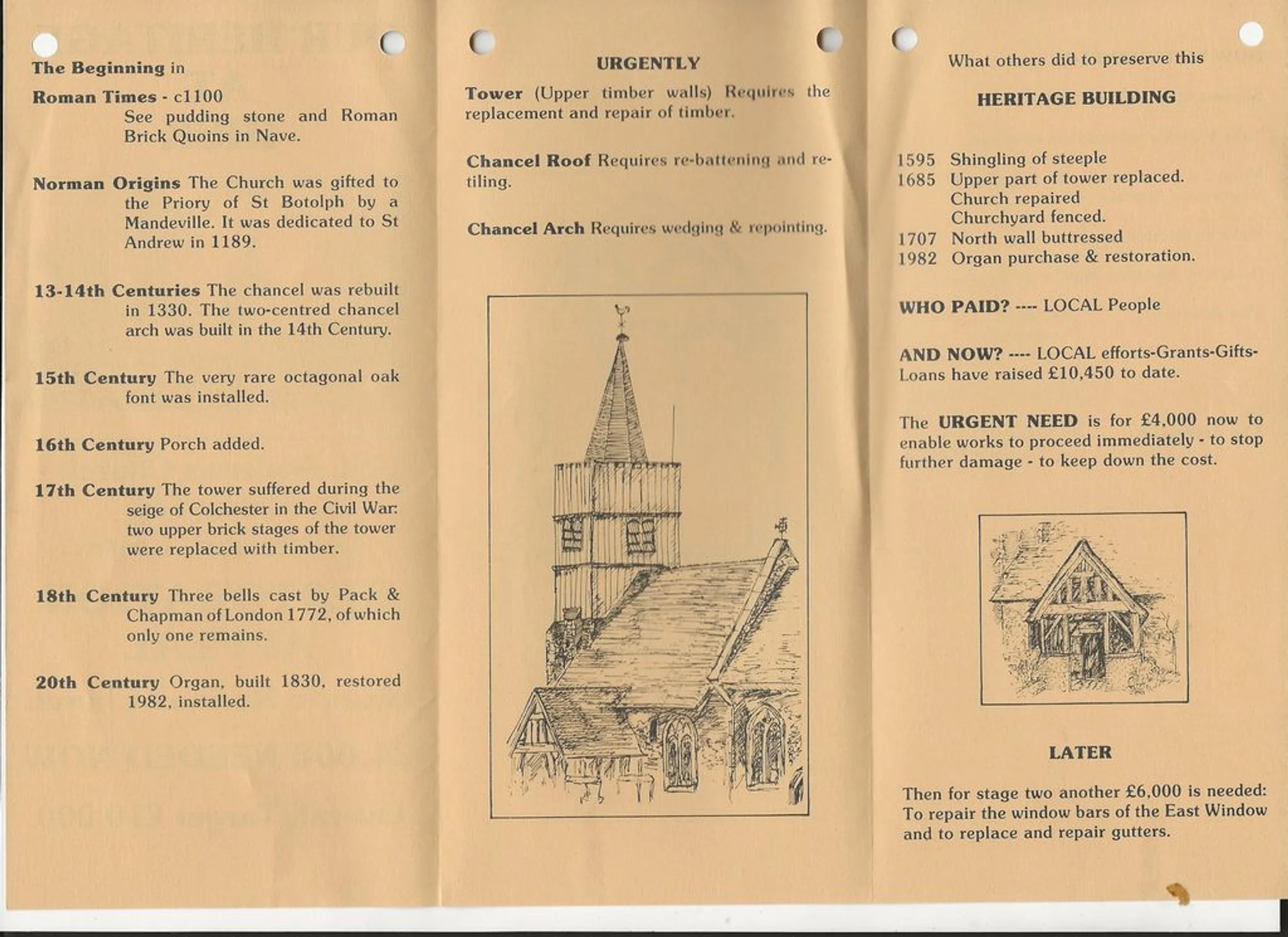 Leaflet for the restoration appeal for the tower of St Andrew's Church, page 2 of 2.