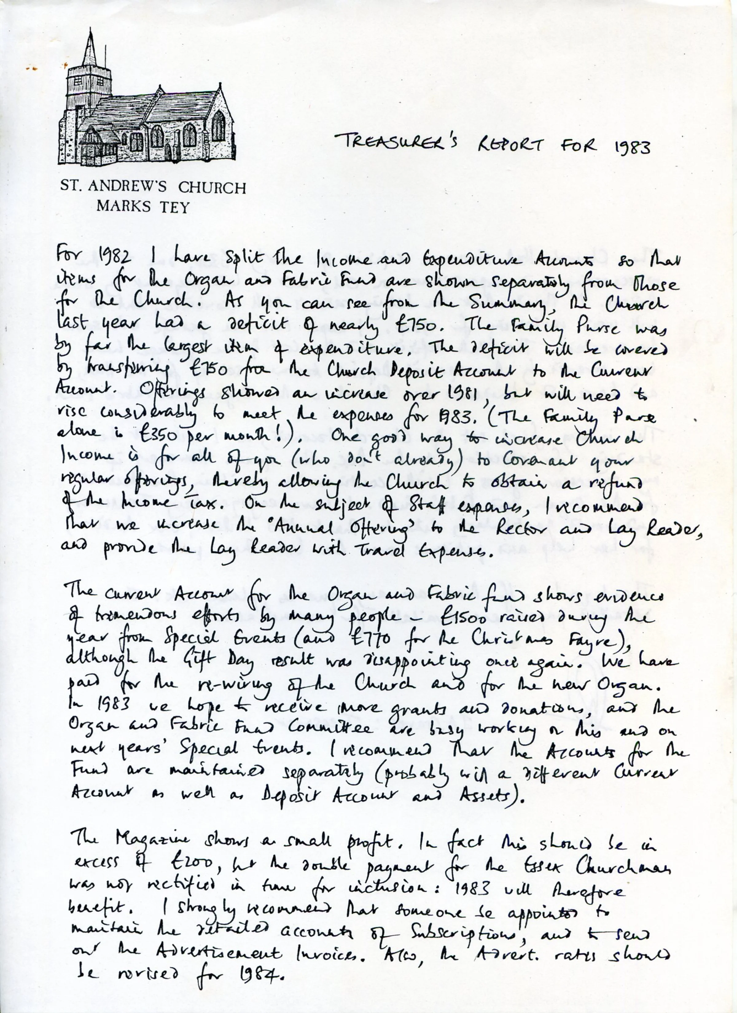 St Andrew's Church treasurer's report 1983