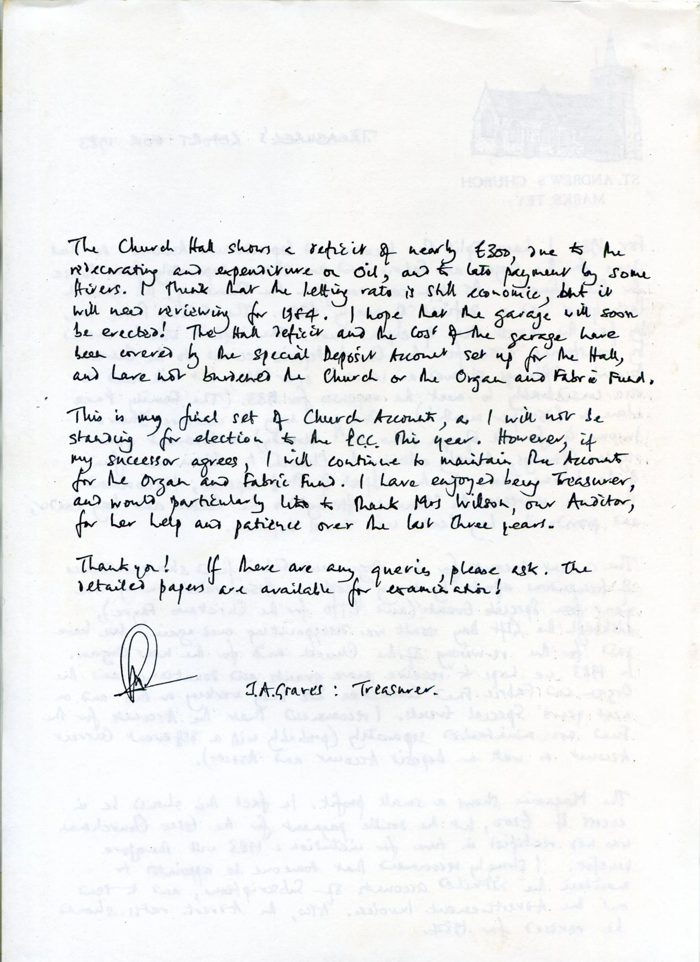 Treasurer's Report for the Parochial Church Council, 1983. Page 2 of 2.