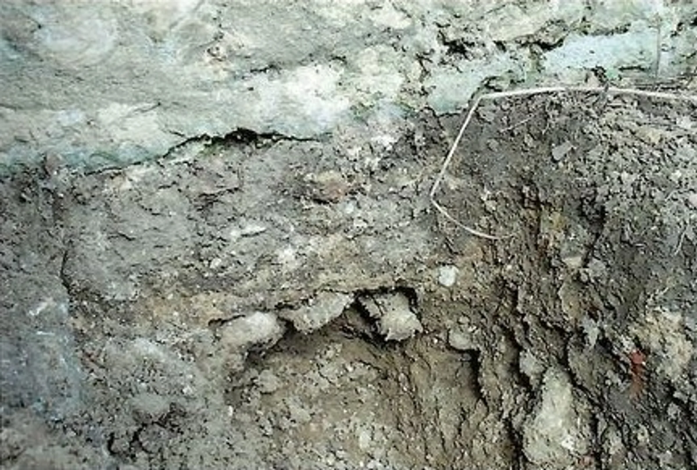 Photographs from an investigation of the church wall foundations, showing the base of the chancel wall.