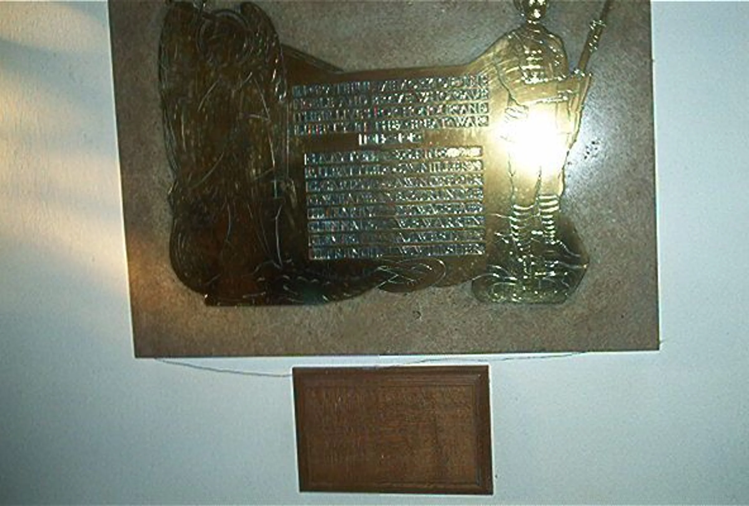 Photograph of the war memoral plaque in the church, recorded in 2002 survey.