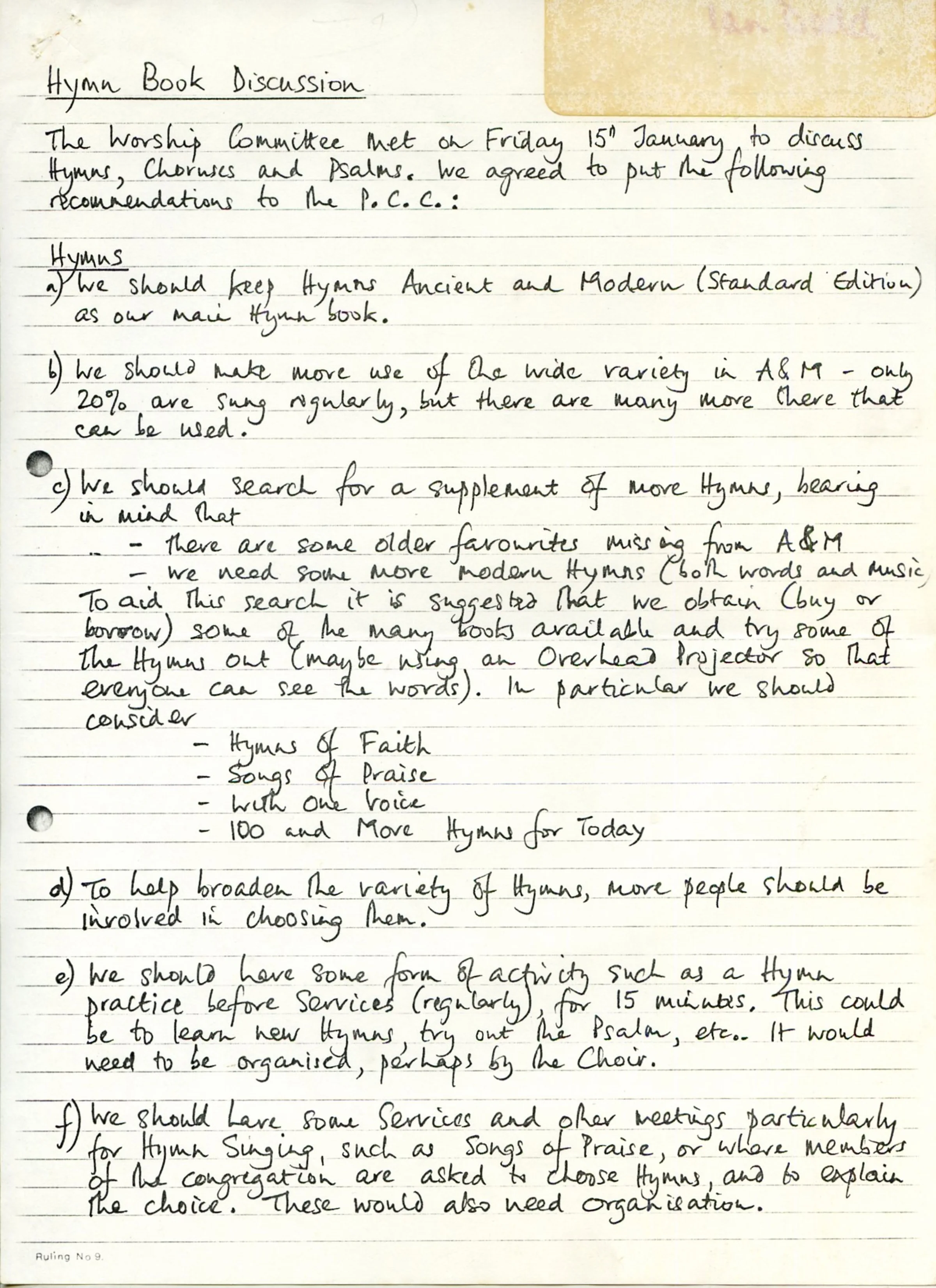 Minutes of the Worship Committee meeting, 15th January 1982. Page 1 of 3.