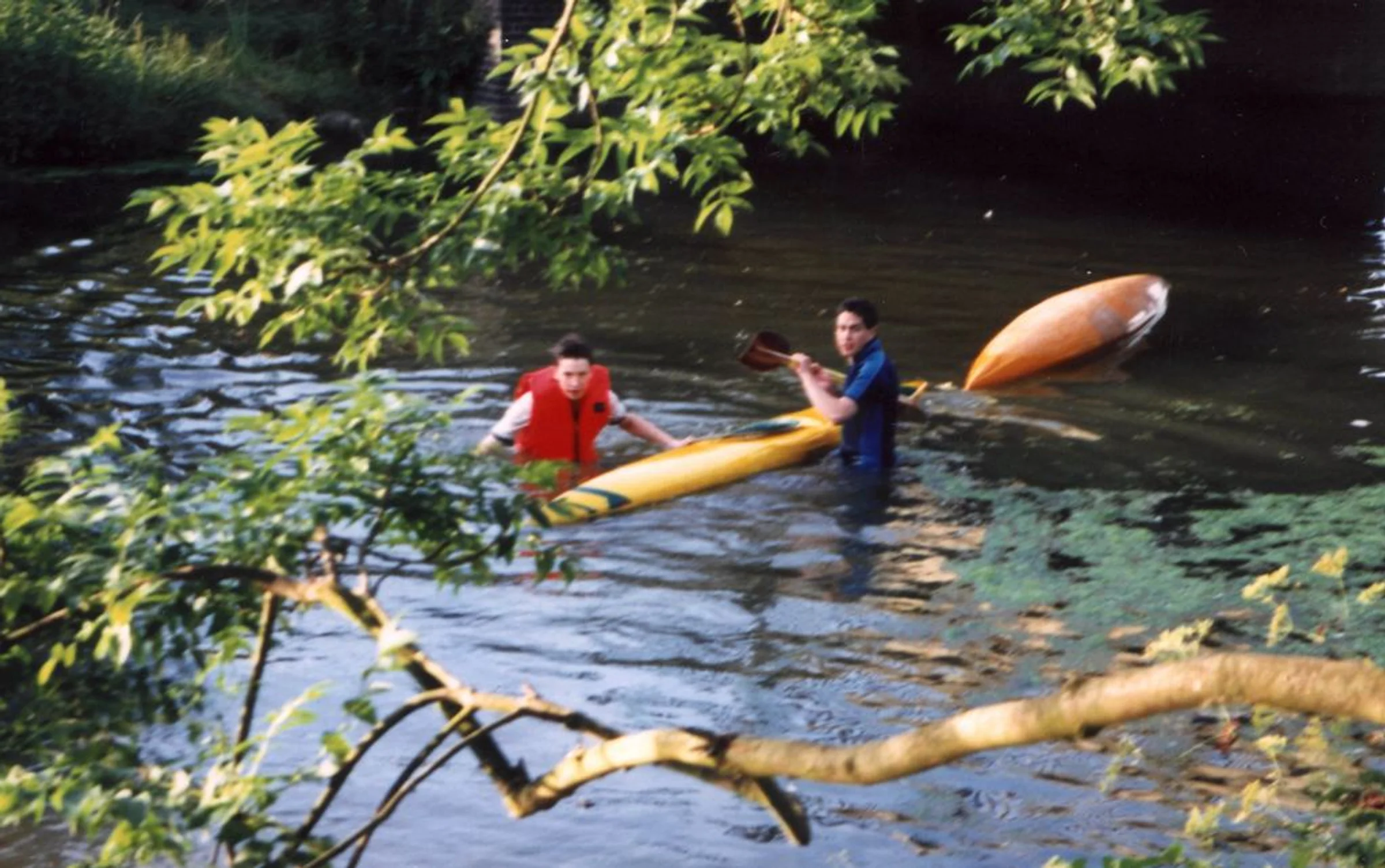 Photograph of a St Andrew's Church Youth Club trip to Dedham for canoeing, May 1989.