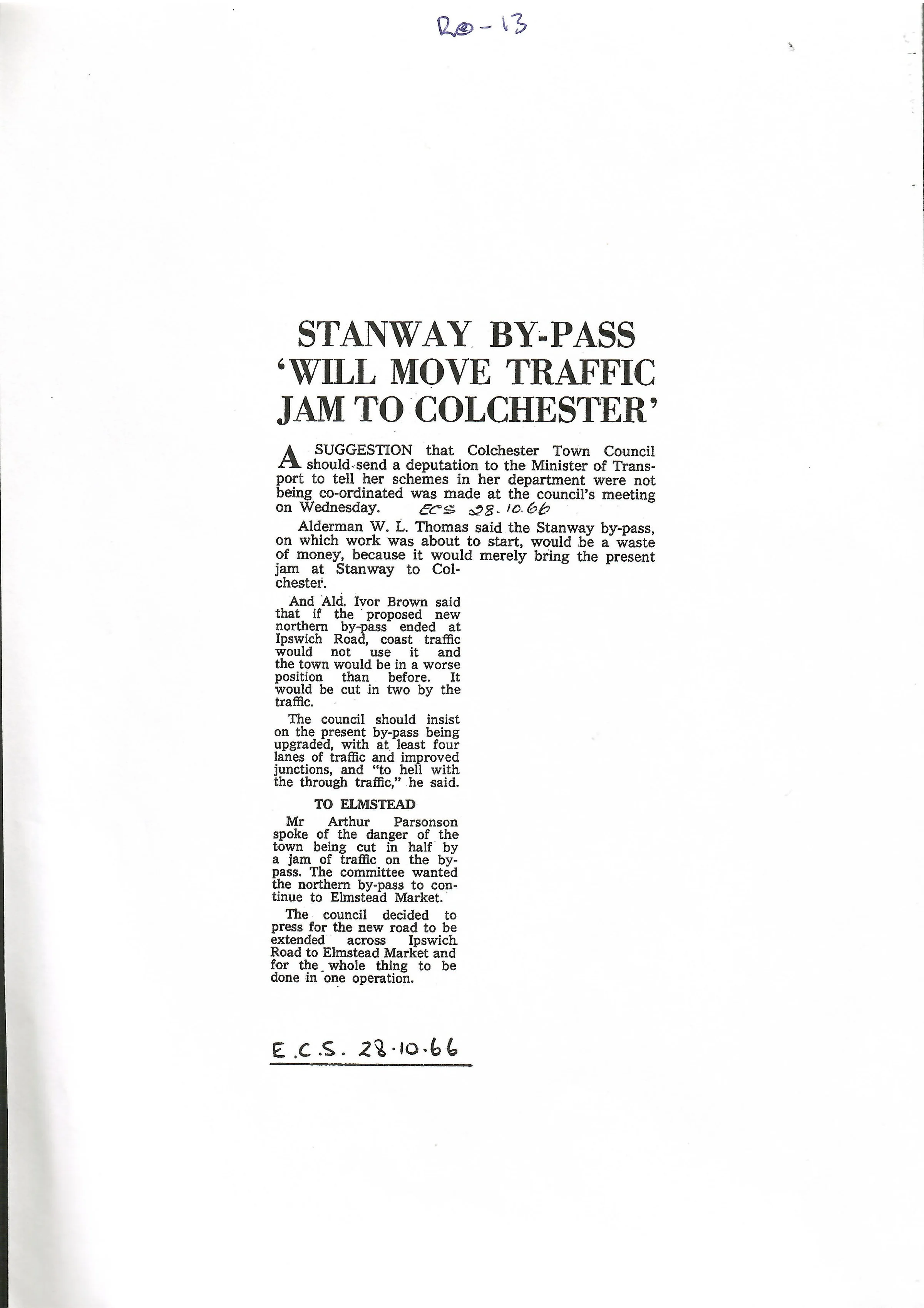 Report on the Stanway bypass.