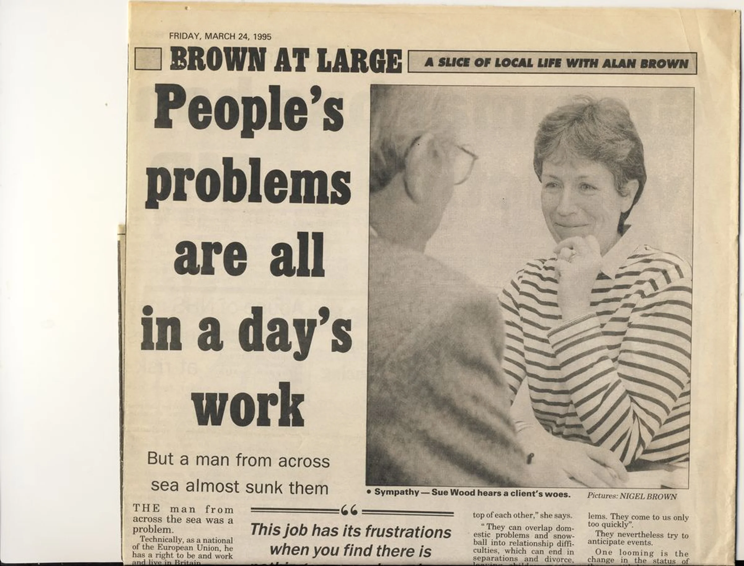 The newspaper is not named and there is not much of the article to read but Sue Wood was a regular attender at the Methodist church.