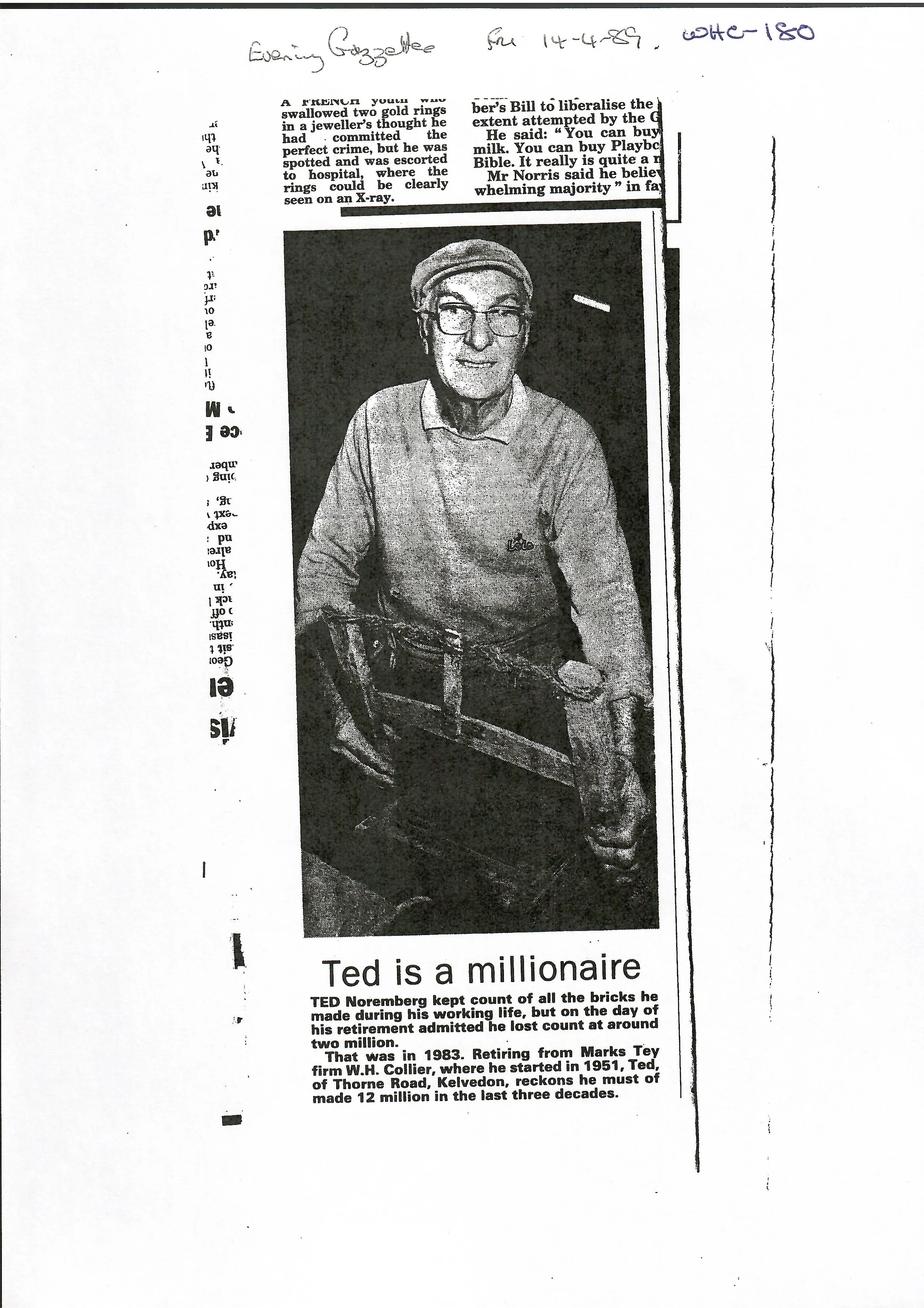 Newspaper describing the retirement of Ted Noremberg.
