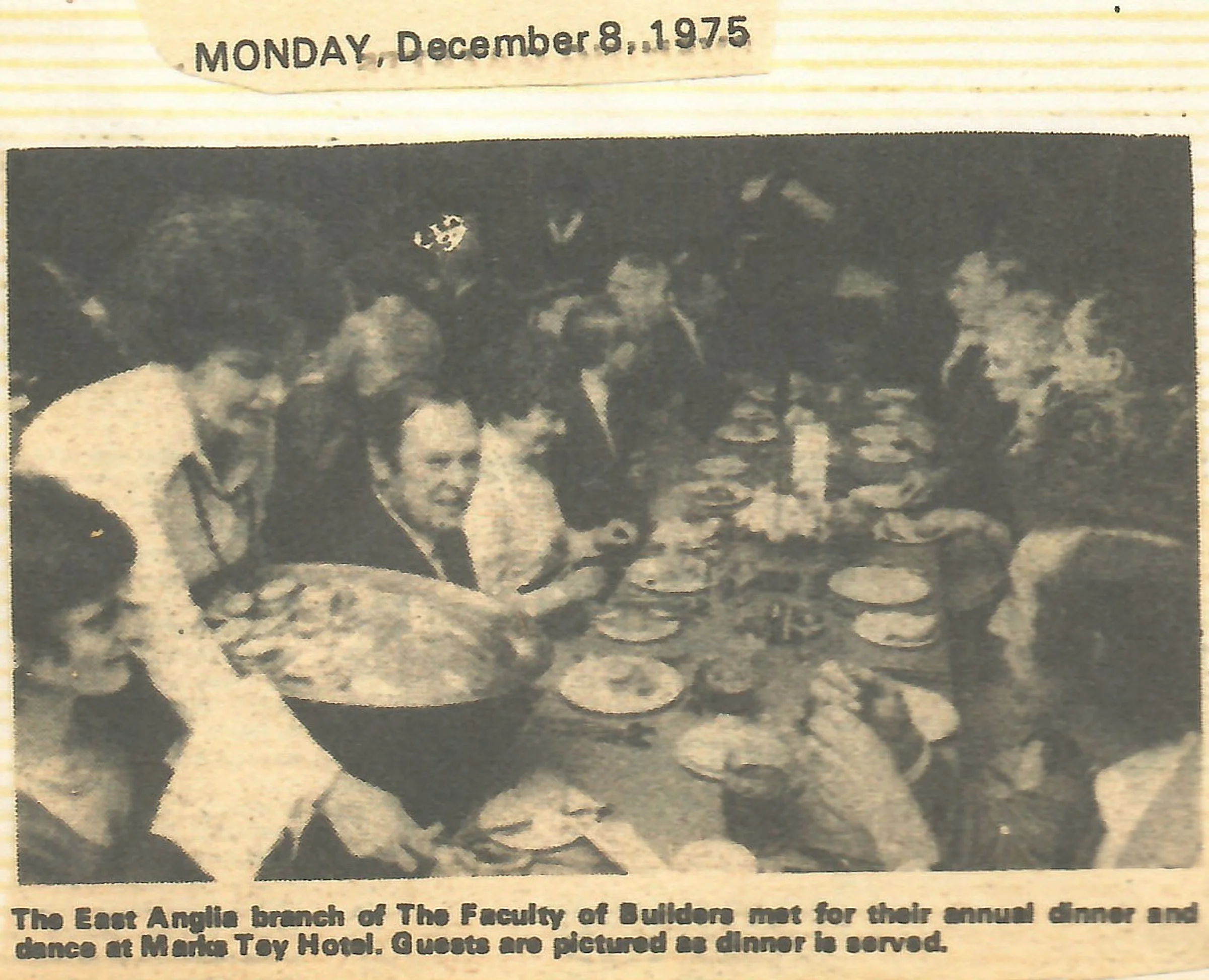 The East Anglia branch of the Faculty of Builders met for their annual dinner and dance at the Marks Tey Hotel. Guests are pictured as dinner is served.