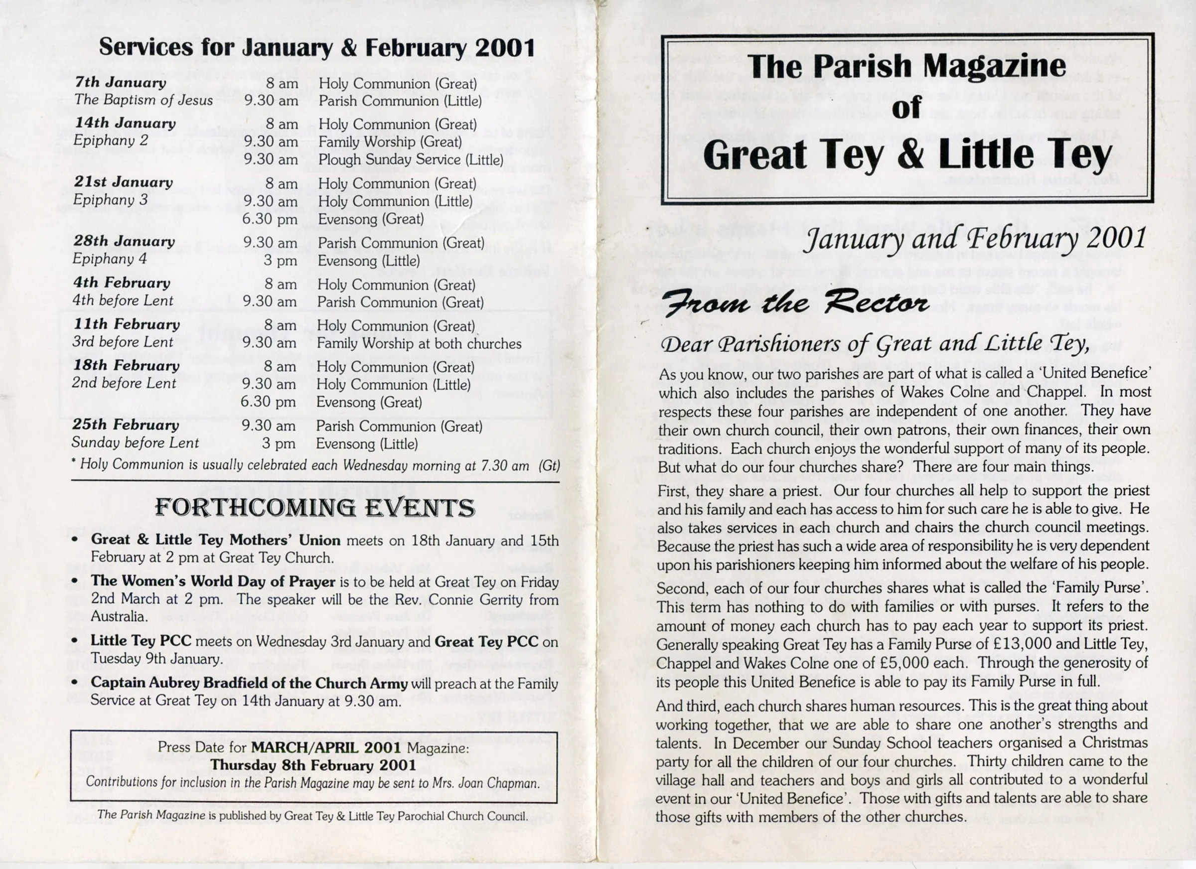 Selected pages from the Parish Magazine of Great Tey and Little Tey, January and February 2001.