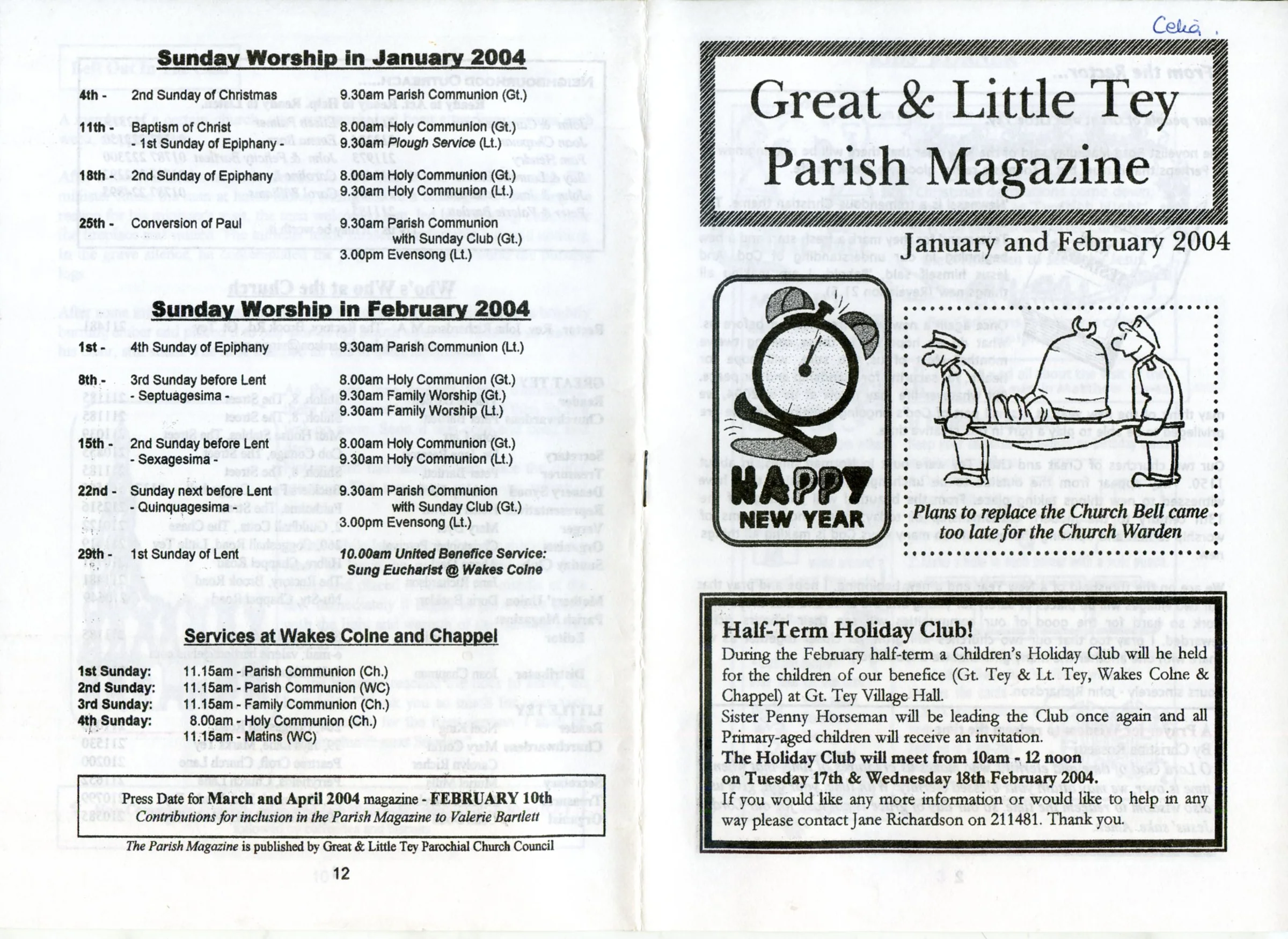 Selected pages from the Parish Magazine of Great Tey and Little Tey, January and February 2004.
