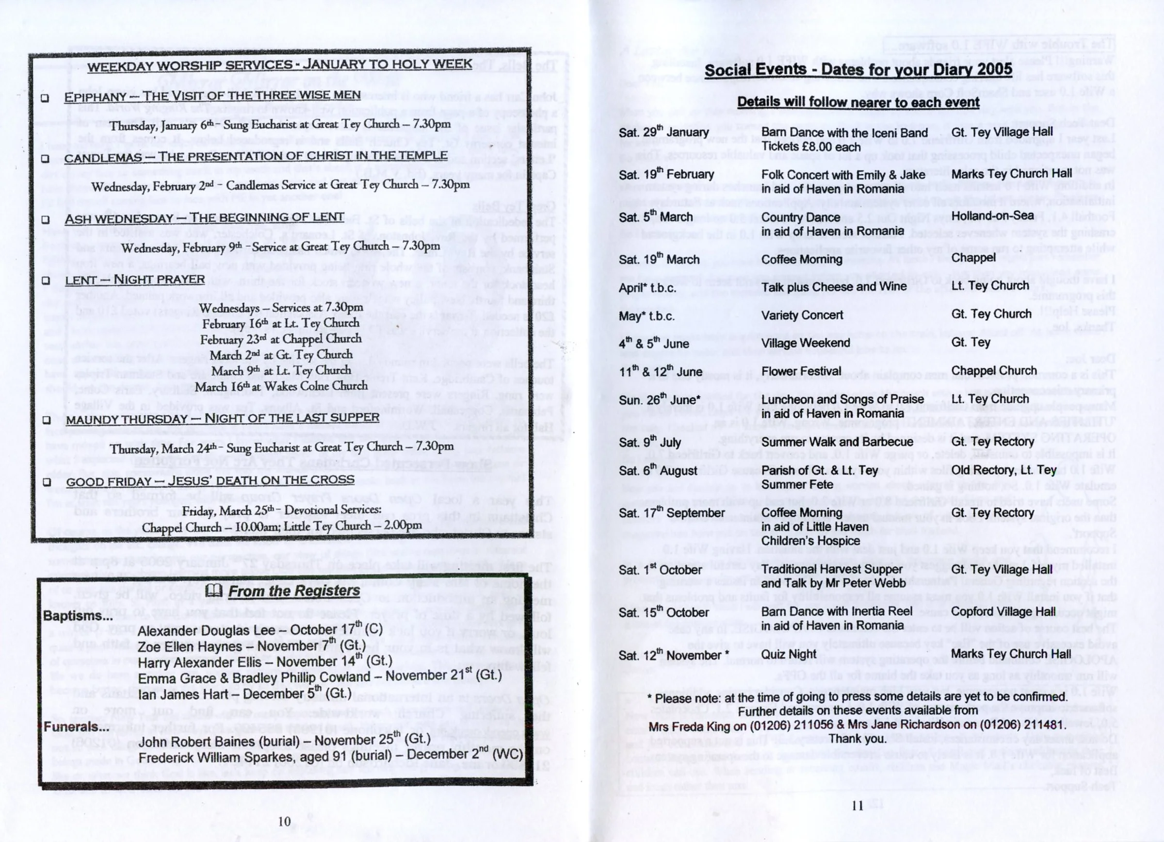 Selected pages from the Parish Magazine of Great Tey and Little Tey, January and February 2005.