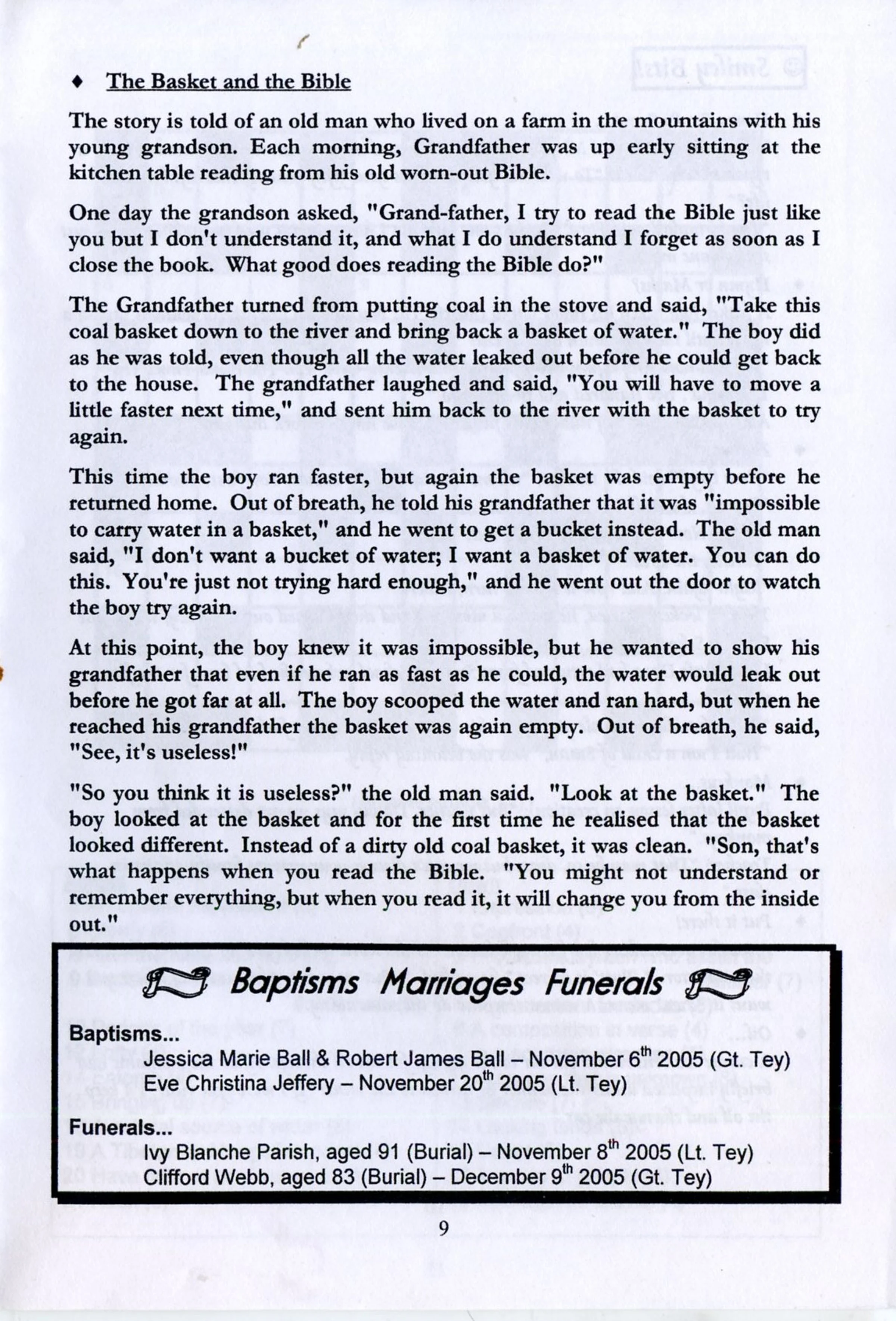 Selected pages from the Parish Magazine of Great Tey and Little Tey, January and February 2006.