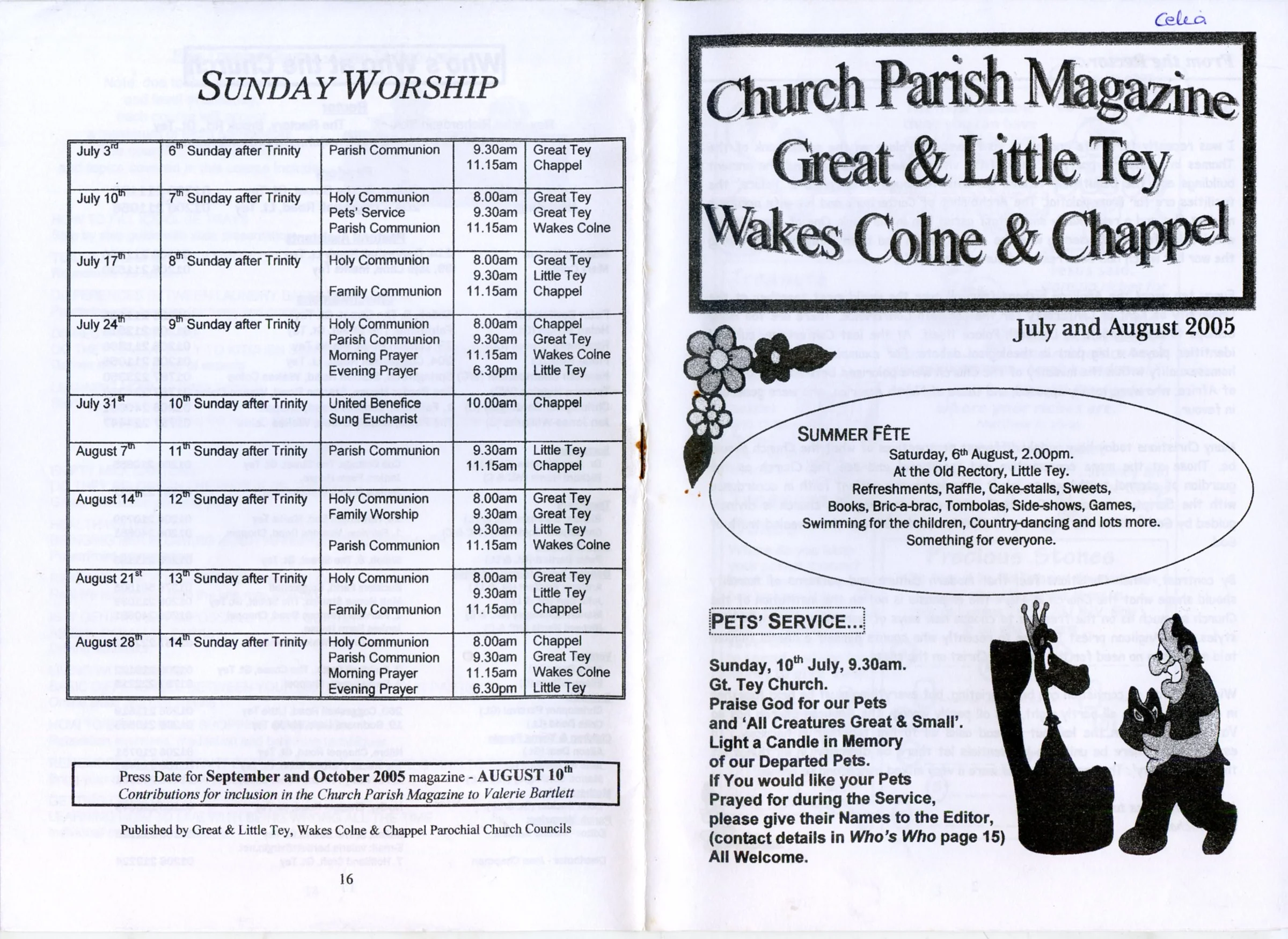 Selected pages from the Parish Magazine of Great Tey and Little Tey, July and August 2005.