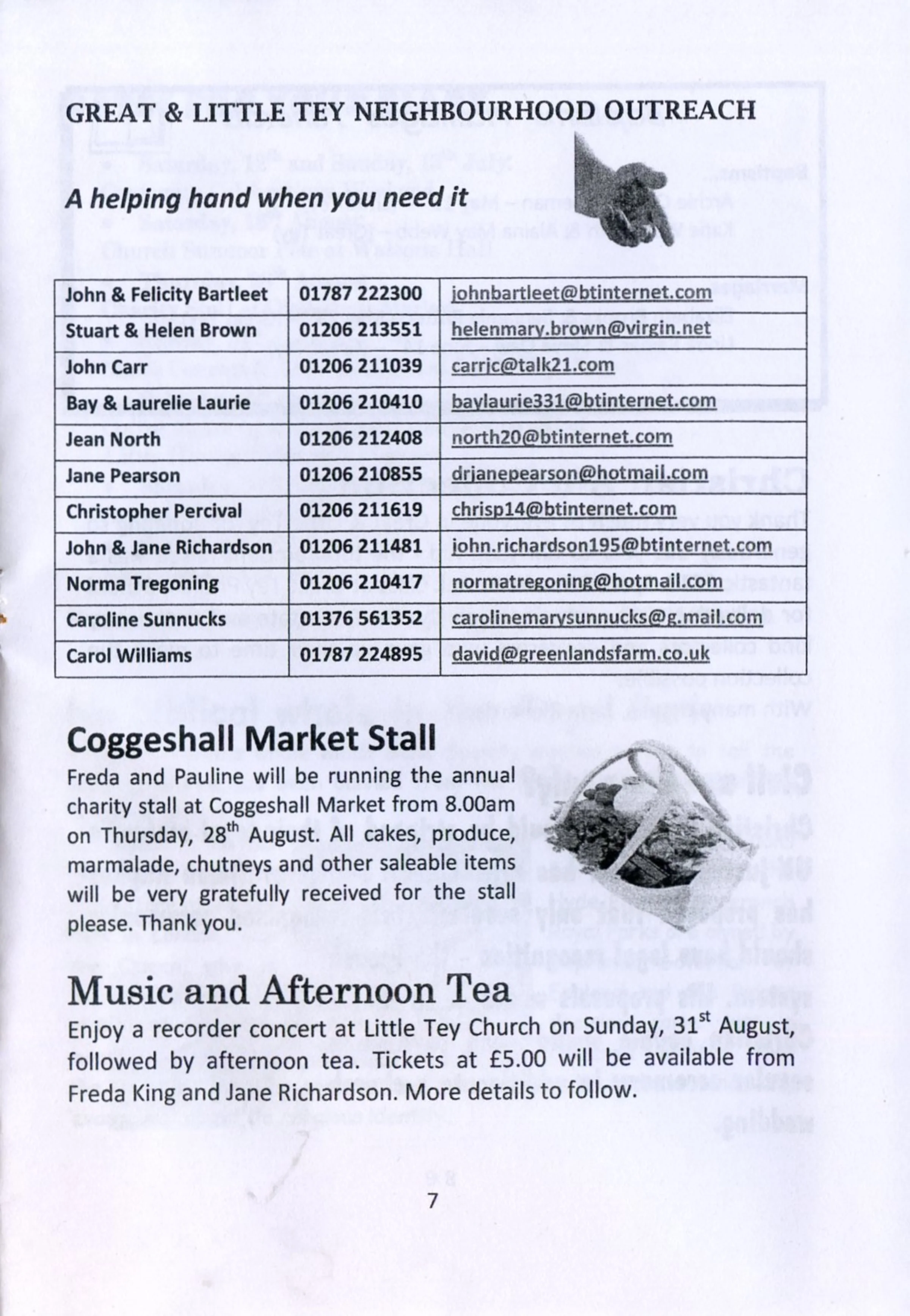 Selected pages from the Parish Magazine of Great Tey and Little Tey, July and August 2014.