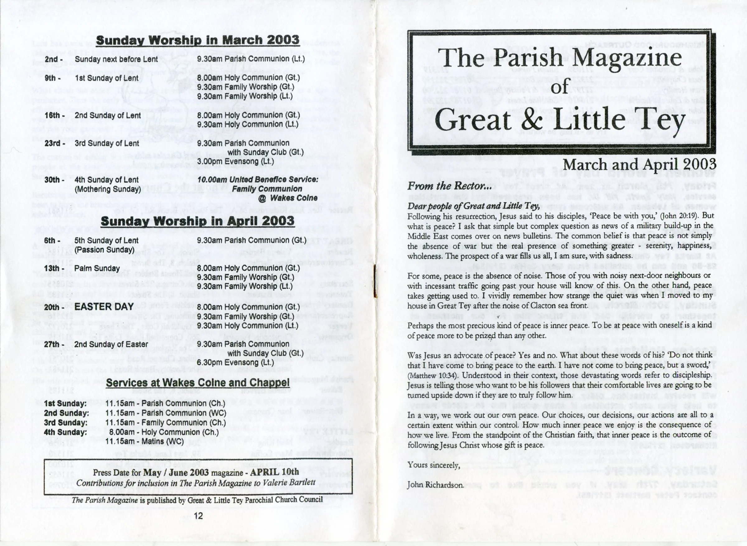 The Parish Magazine of Great Tey and Little Tey, March and April 2003