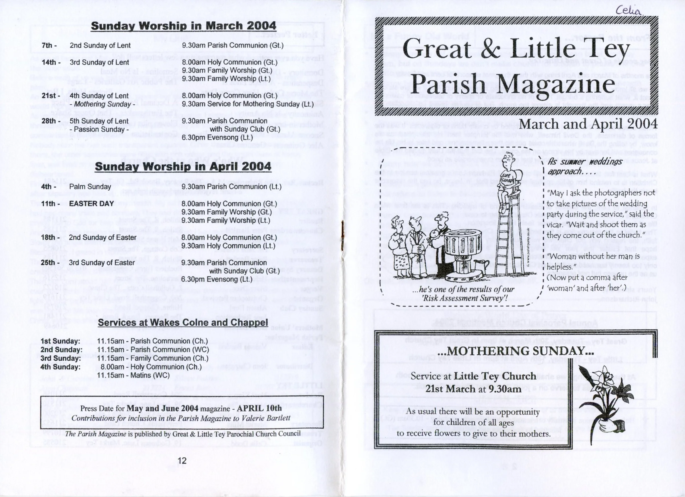 Selected pages from the Parish Magazine of Great Tey and Little Tey, March and April 2004.
