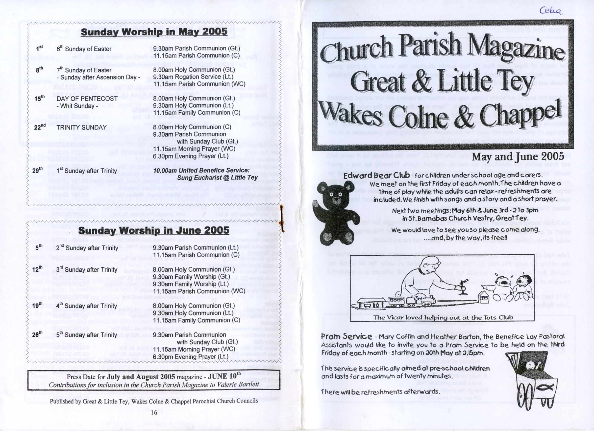 Selected pages from the Parish Magazine of Great Tey and Little Tey, May and June 2005.