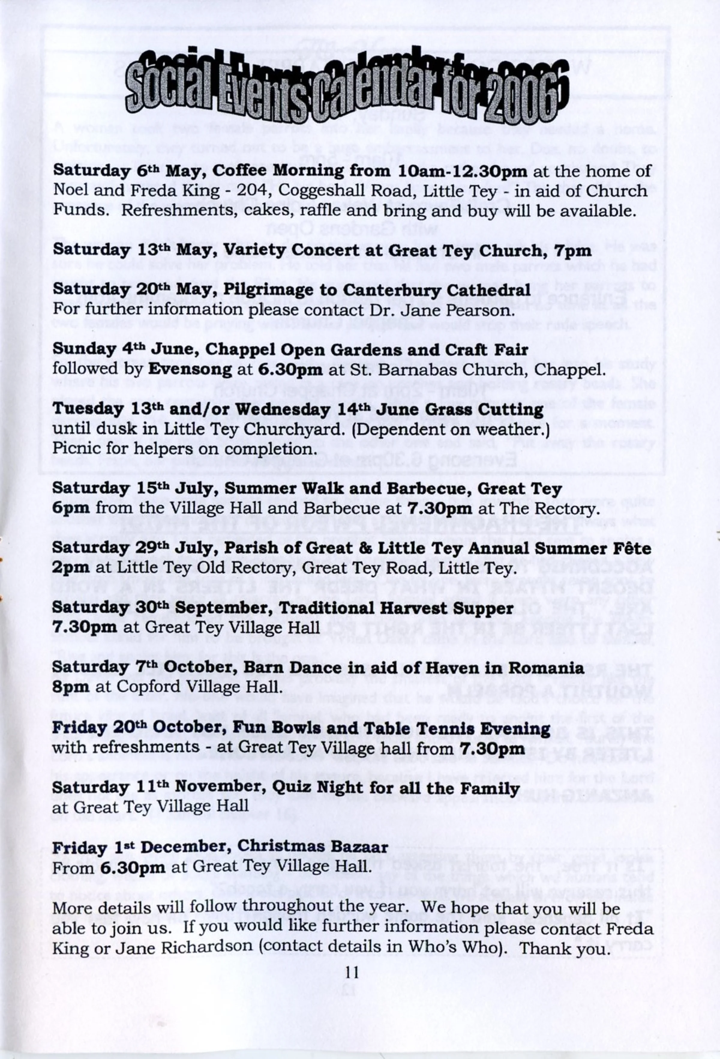 Selected pages from the Parish Magazine of Great Tey and Little Tey, May and June 2006.