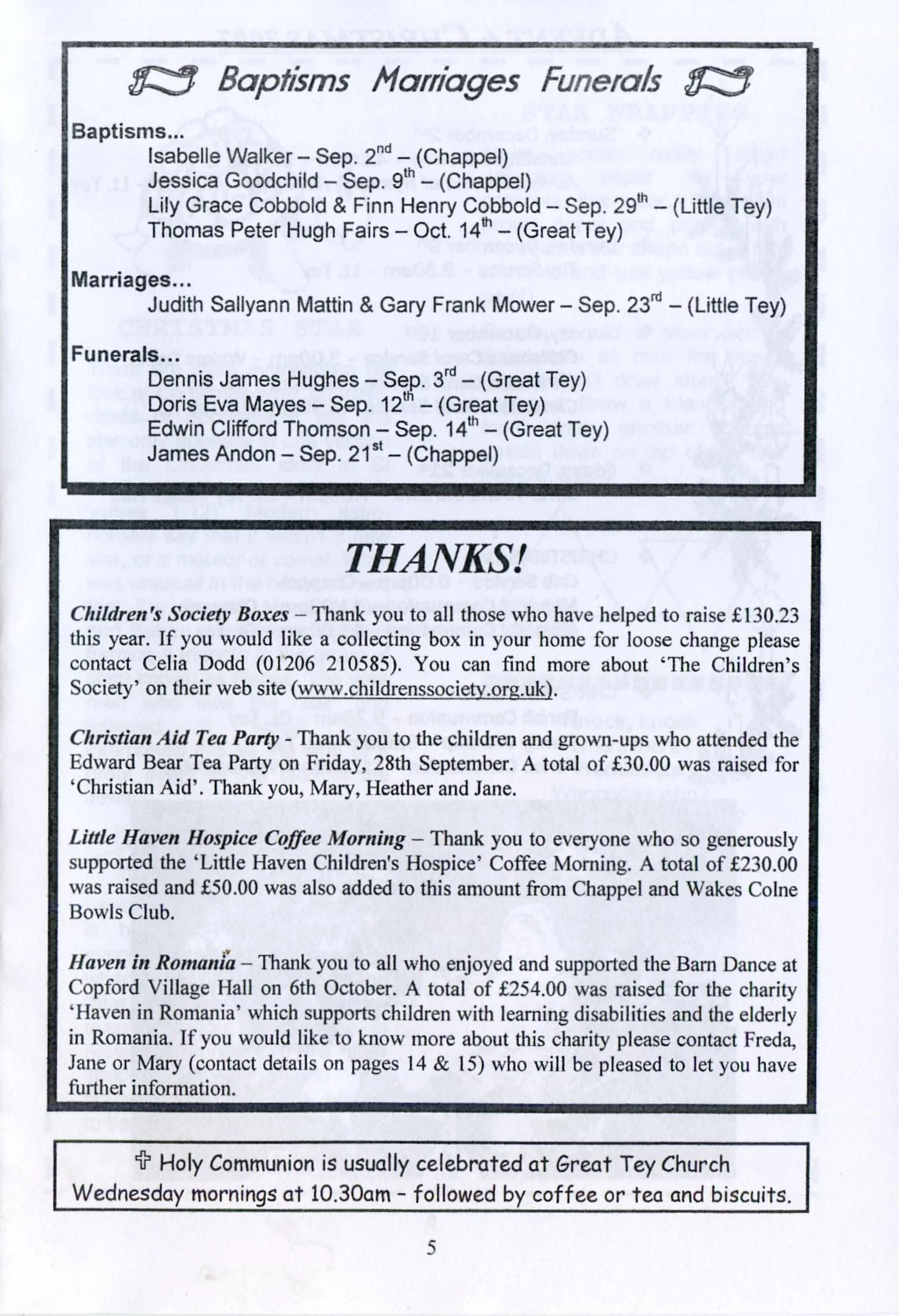 Selected pages from the Parish Magazine of Great Tey and Little Tey, November and December 2007.
